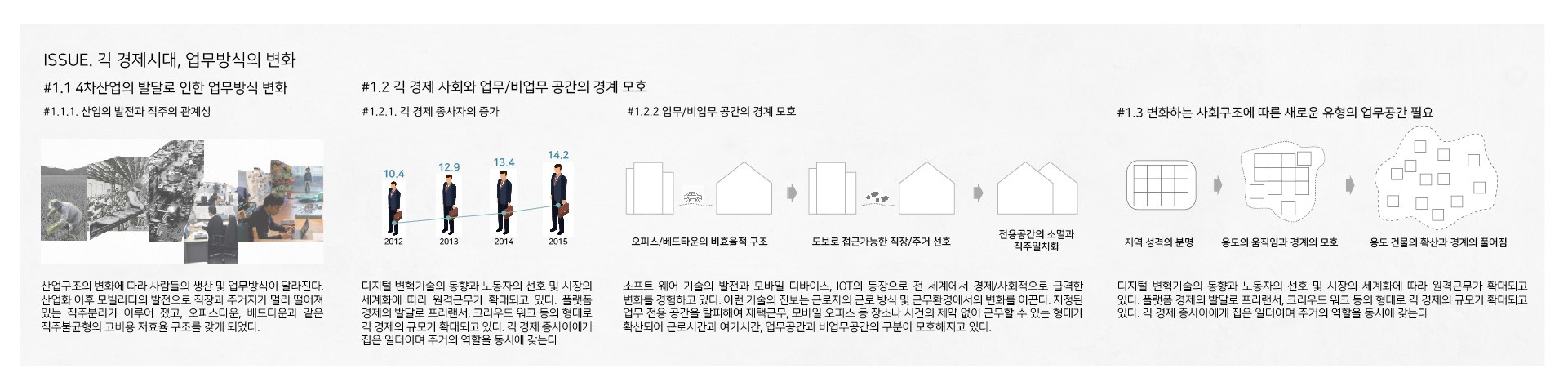 뉴노멀 시대에 국면하여 직주근접 및 직주일치화의 방향으로 전환되고있다. 사회의 변화에 따라 사람들이 요구하는 새로운 장소가 필요하다.