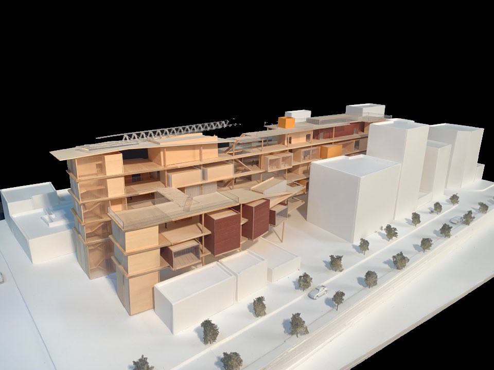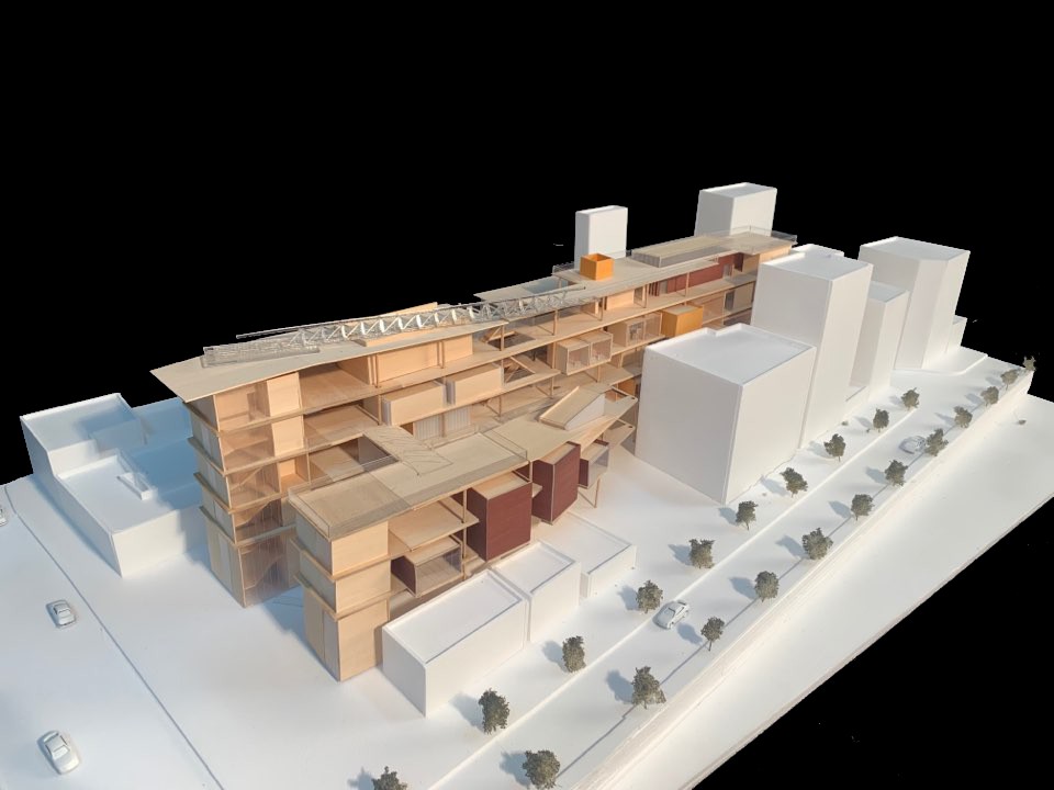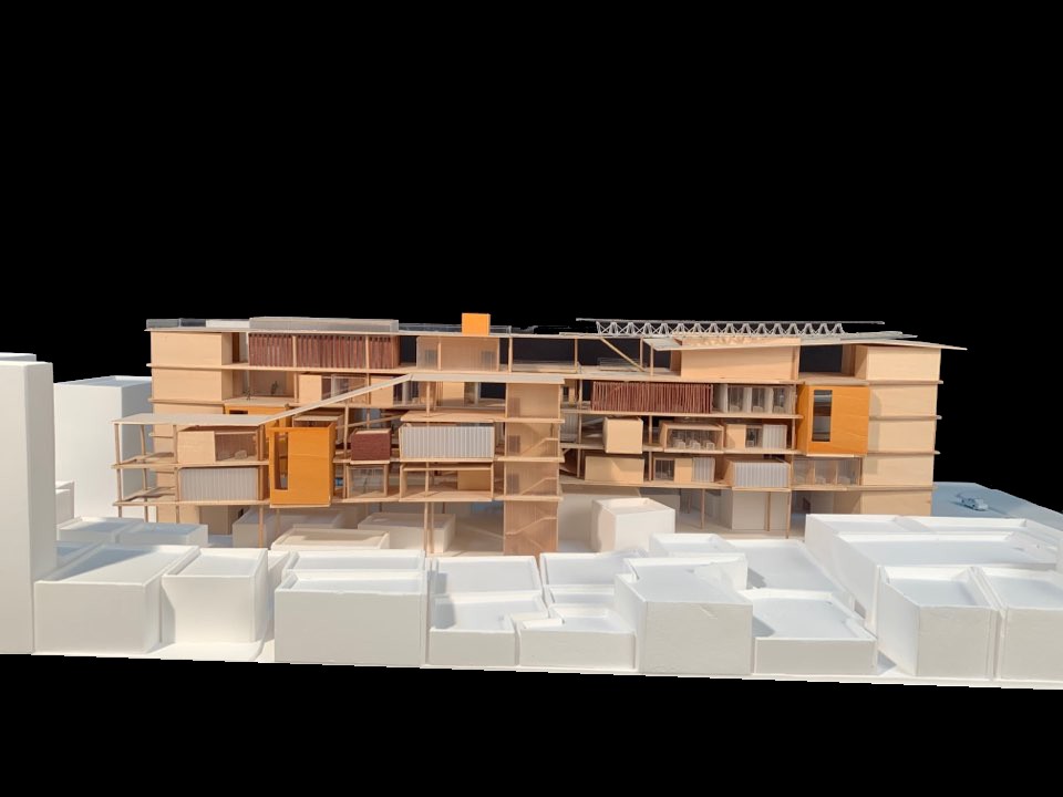 3문단 : 1. 지역 연계 랜드마크 문화시설의 역할: 공구상가 일대의 특성을 활용하여 문화공간을 재 정리 2. 리모트워커를 위한 W&L: 작업 및 주거 환경을 제공하기 위해 주거 유닛 타입 제공 3.모듈러 방식과 패널라이징: 공장에서 유닛타입, 벽을 제작하여 현장에서 조립하는 시스템 적용 4.성장형 프로토타입: 상대적으로 공간의 변화가 자유로워 필요에 의해 증축 및 성장 가능 / 크게 4가지의 솔루션을 접목시키고자 하였고, 긴밀한 관계를 갖는 도심 내 제조업의 활성화 및 새로운 시스템을 융합시켜 기존 장인들과 시민들의 협업 프로그램의 활성화를 기대해본다.