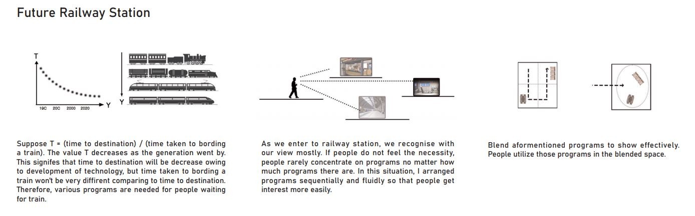 또한 미래의 철도역은 어떠한 방향성을 갖게 될지에 대해 고민해보며 설계를 진행하였다.