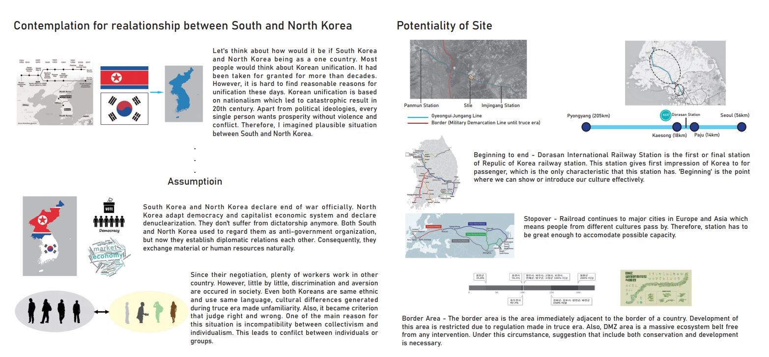 전세계 주요 대도시와 이어지는 철도역이며 접경지역에 위치해있다. 이러한 사이트의 특징과 잠재성을 잘 활용하고자 했고 교류속에서 일어날 수 있는 사회적 문제 또한 생각해보았다.