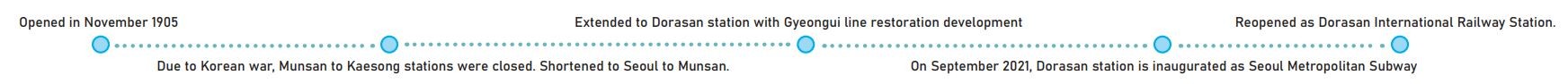 도라산역으로 개통될 예정이다. 앞서 언급한 상황적 배경에 따라 이 도라산역 또한 활성화되고 이 역이 갖는 잠재성에 대해 생각해보았다. 도라산역은 우리나라 철도역의 시작점이자 종착역이며