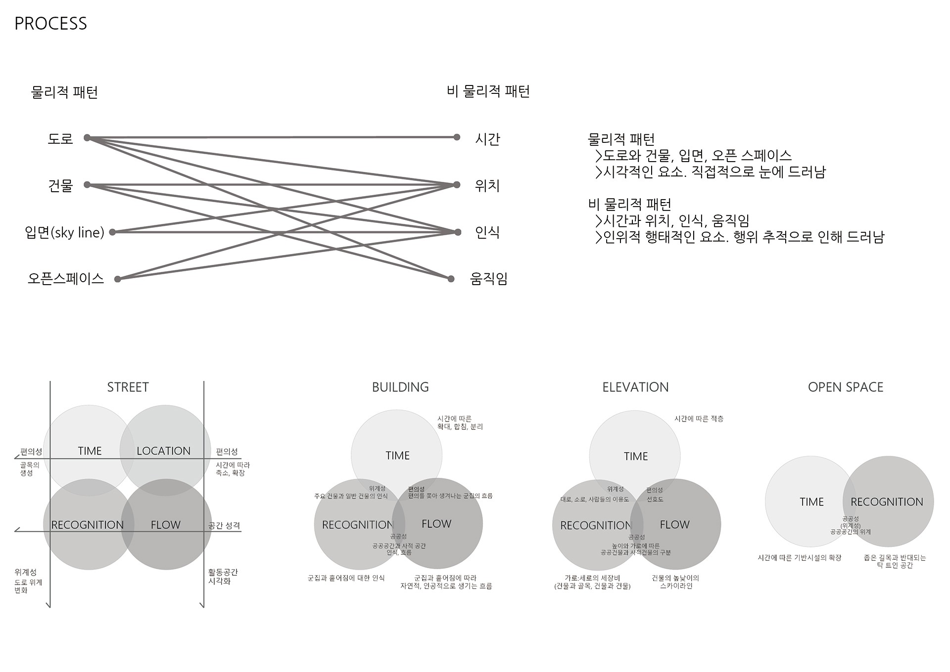 가로 공간은 연속성, 장소성, 유동성, 공유성, 공공성을 가진 공간으로, 다양한 위계를 가지고 있다. 대로는 이동 및 통과가 주 기능이므로 구성요소