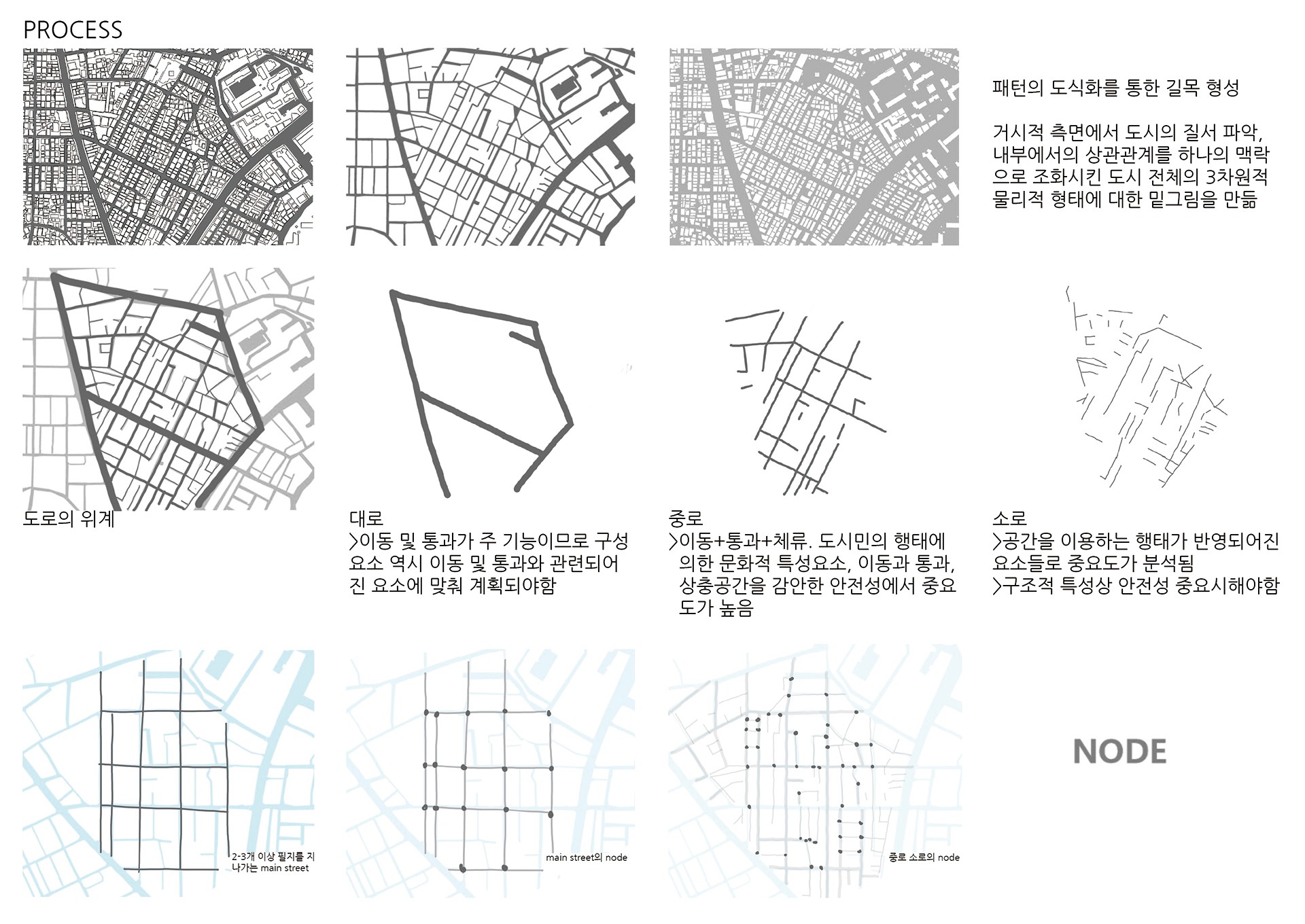 역시 이동 및 통과와 관련된 요소에 맞춰 계획되었다. 중로는 이동과 통과, 체류의 기능을 하고 있어서 도시민의 행태에 의한 문화적 특성요소,