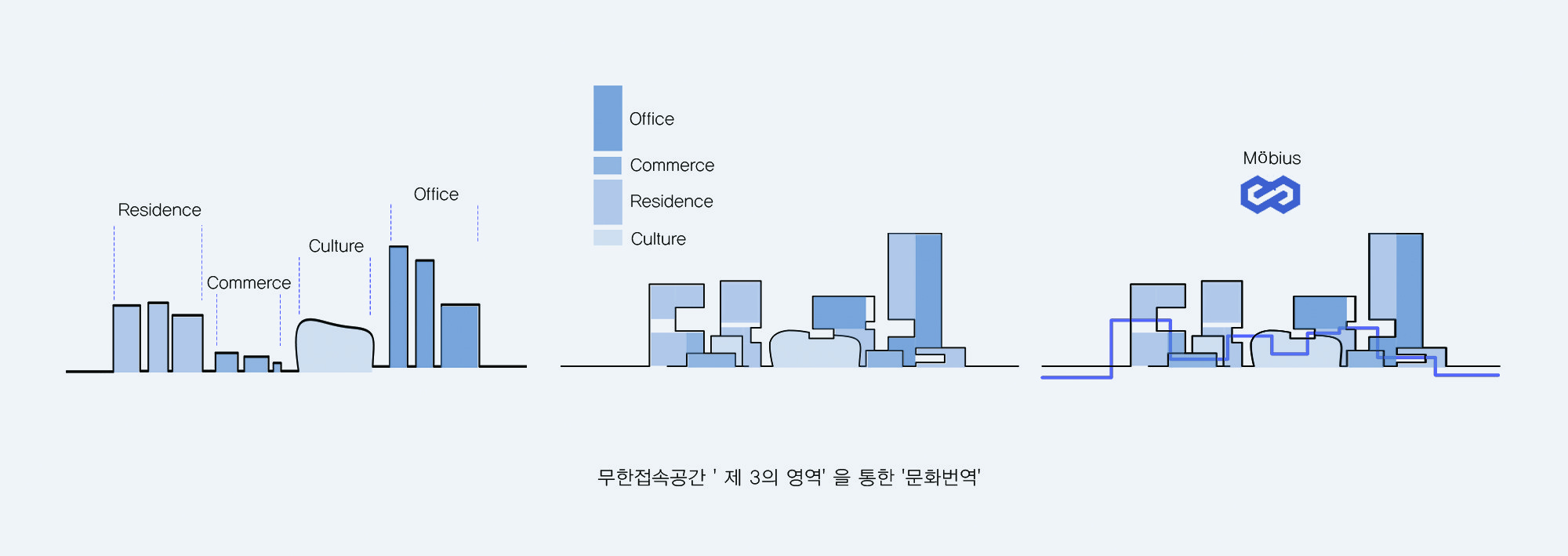 고착화된 도시의 과정들이 뫼비우스플랫폼을 통하여 탈피되고 영역의 분해와 확장을 통해 접촉지대의