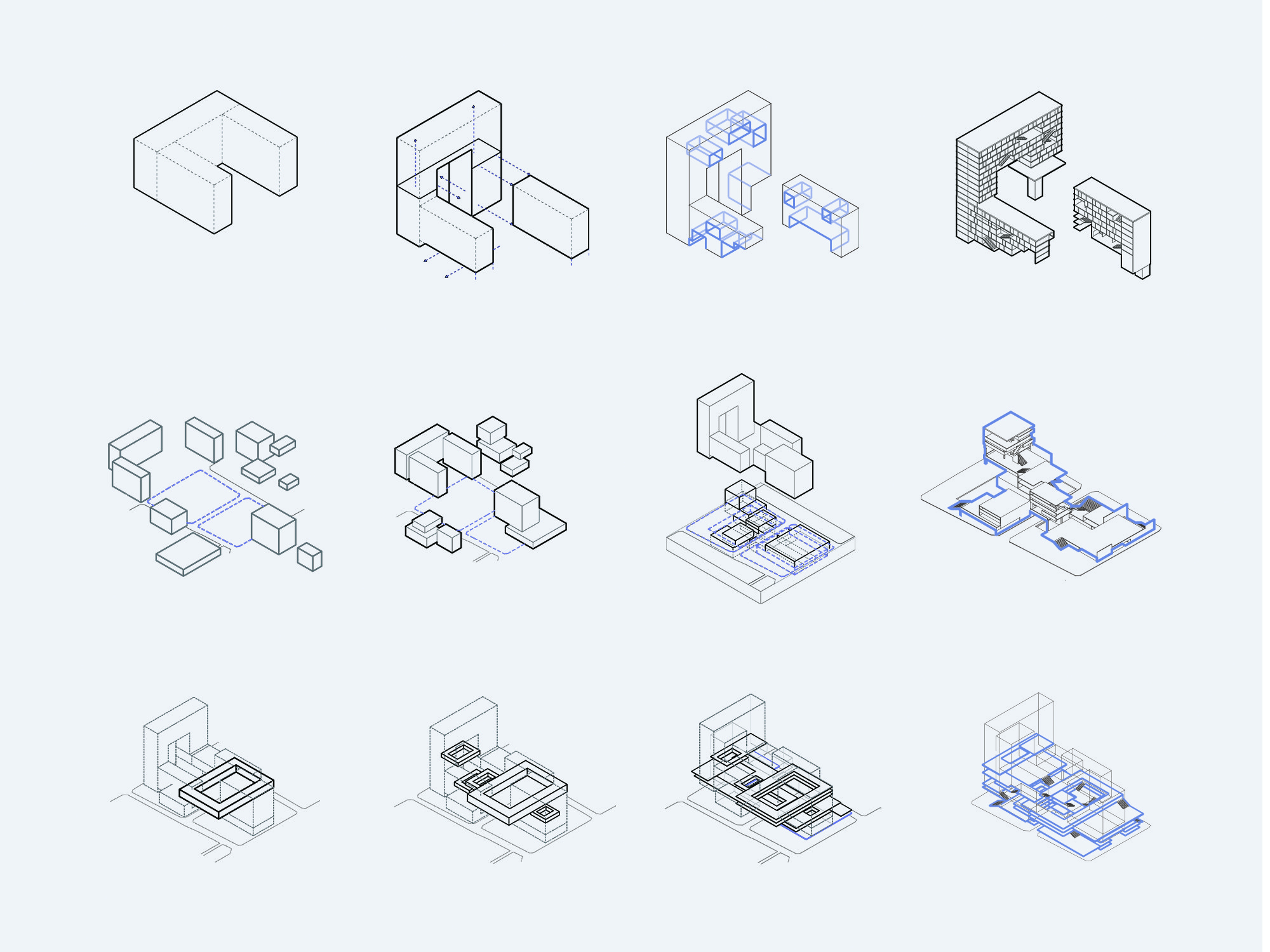 기존공간의 재조직을 통한 공동의 장 형성, 기존의 프로그램들을 새로운 형성과정에 맞게 필요로 하는 공간들을 병치하고 서로 재조직,