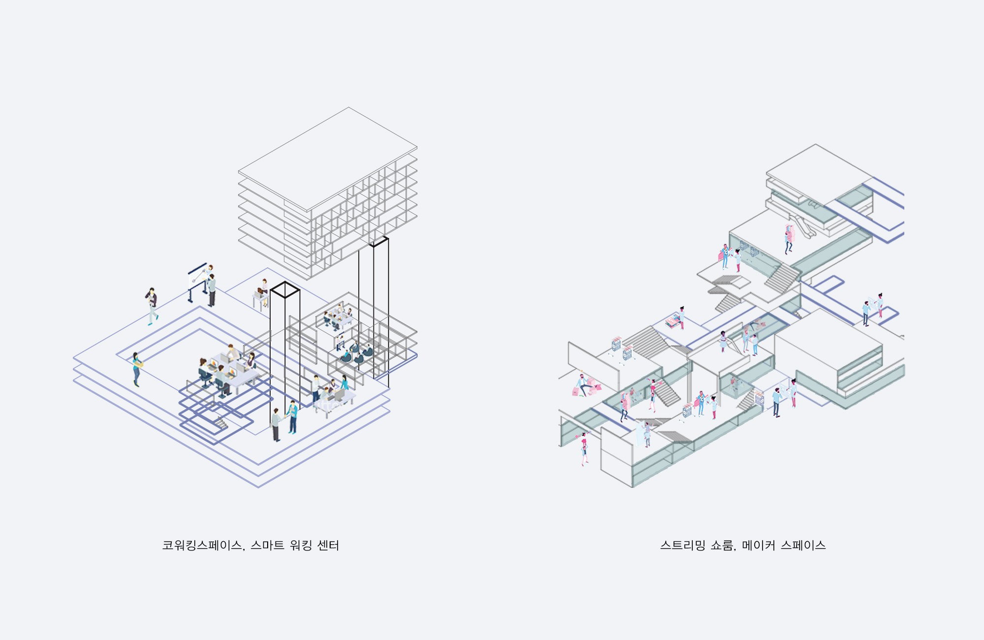 된 접속공간에서의 실시간으로 펼쳐지는 쇼룸과 참여적 행위의 문화시설은 스트리밍 라이프를 선사한다.