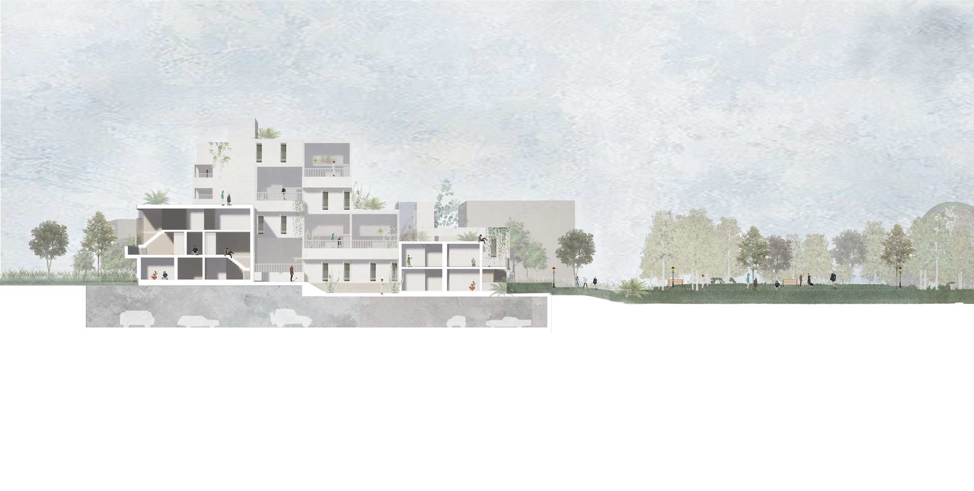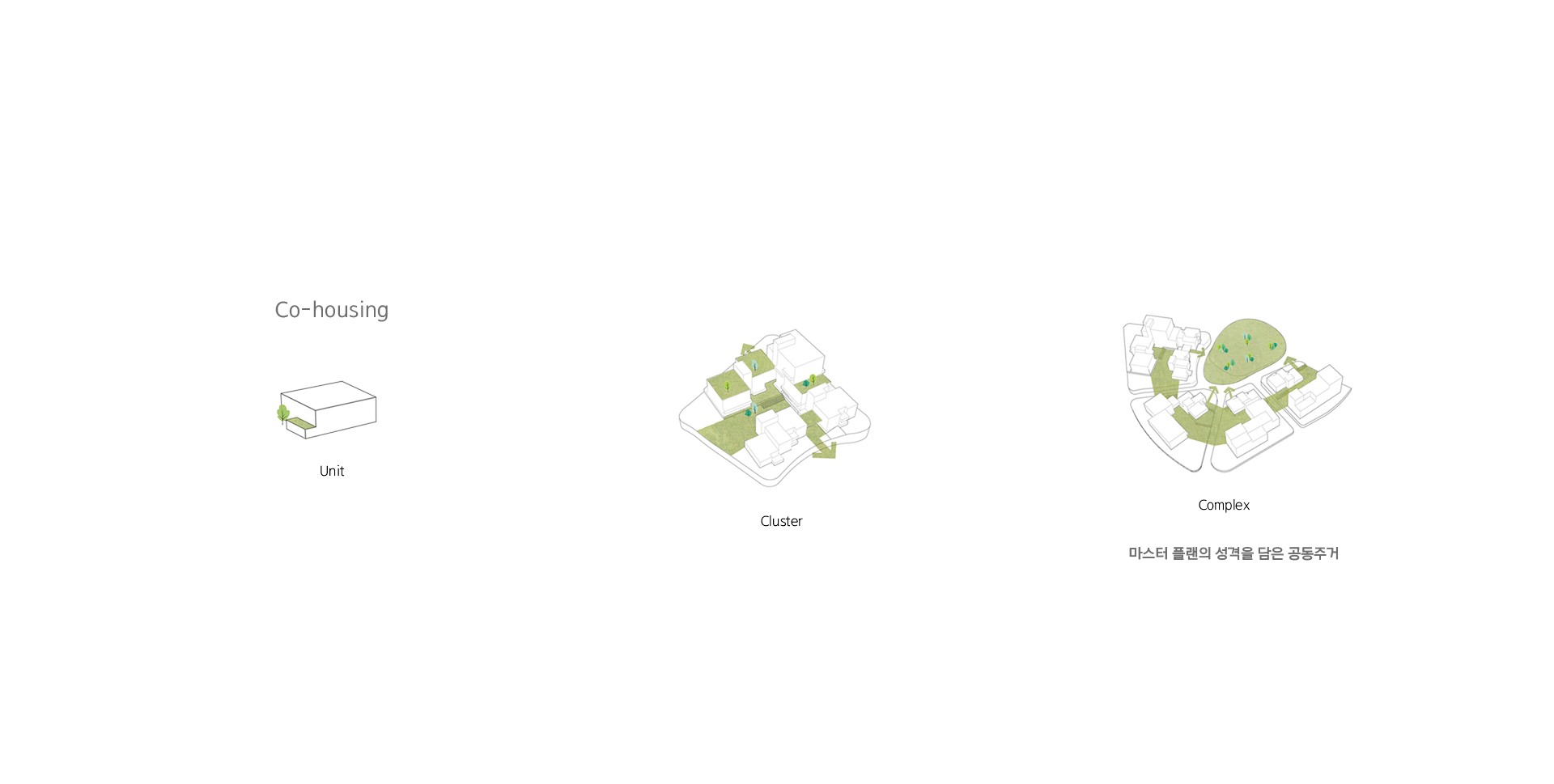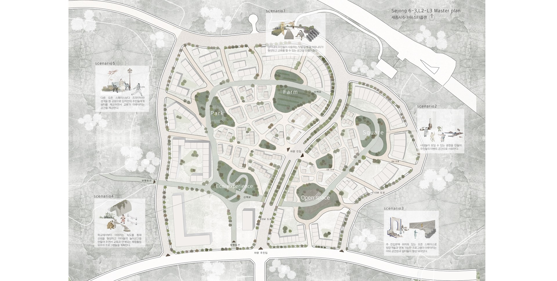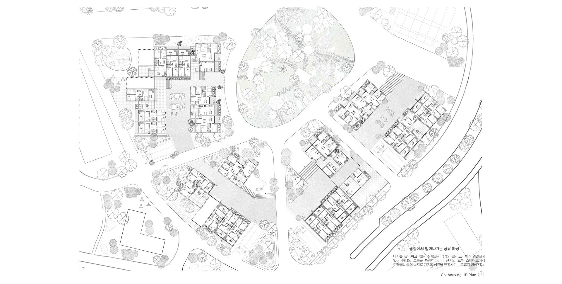각각의 오픈스페이스를 중심으로 둔 단지들은 다른 성격을 부여받으며 다양한 이벤트가 일어날 수 있는 공간을 형성한다.