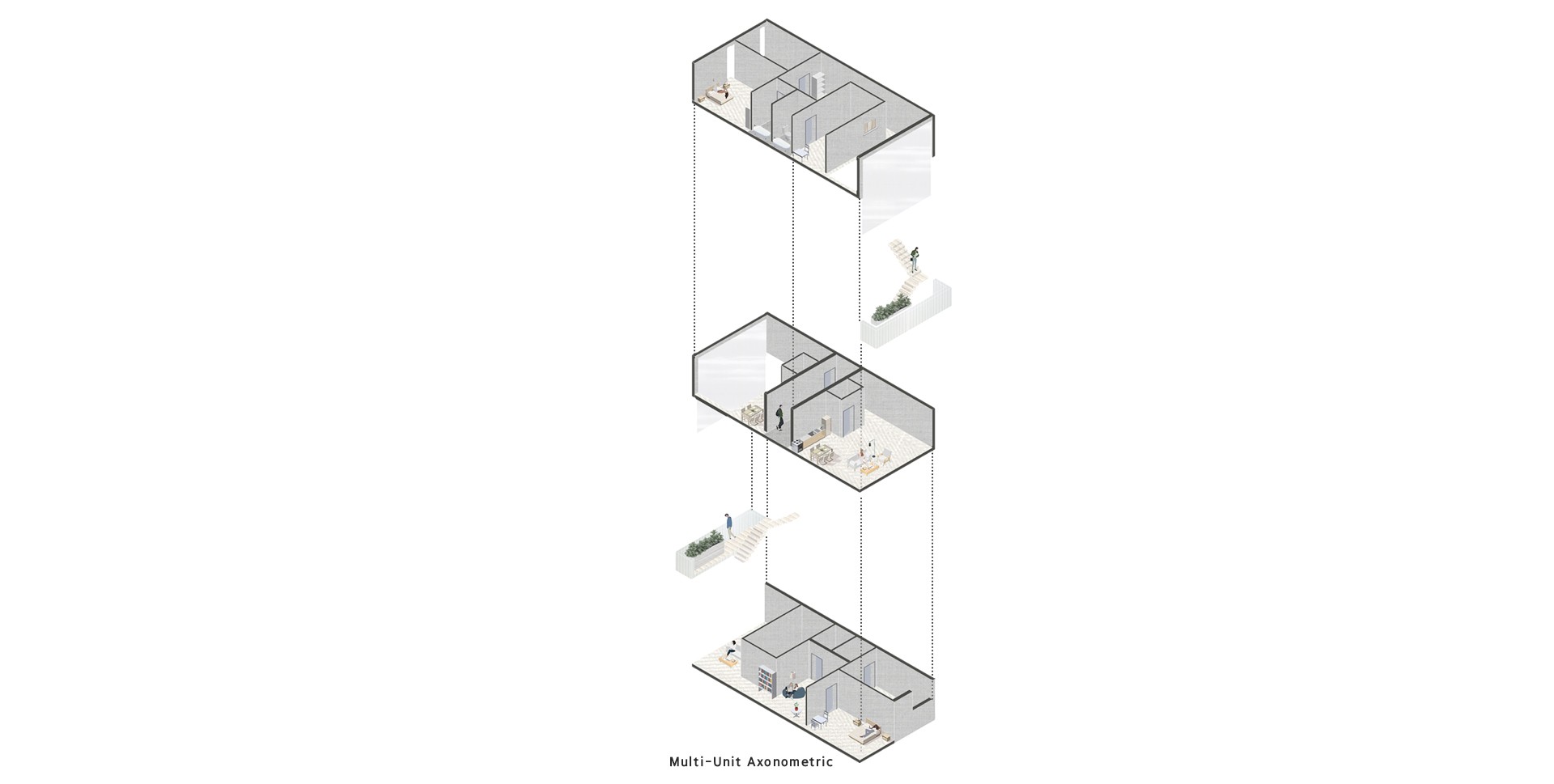 따라서 사람들의 커뮤니티를 위한 보행친화적인 가로를 형성하여 끊임없이 변화하는 풍경을 제공하기 위해 사람들의 자연적인 이동동선인 불규칙한 거리 정렬을 통해 단지를 형성한다.