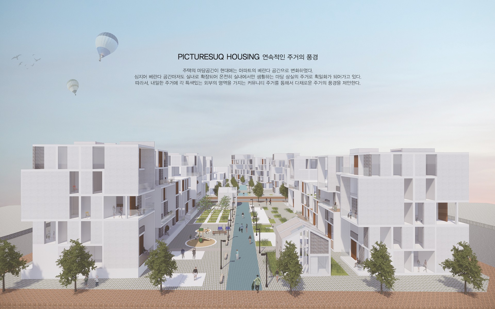 COVID-19로 인한 사회적 거리도 점점 심화되는 와중에 실내에서 답답함을 느끼는 현대인들이 사람들과의 접촉을 적절히 취하면서 주거에 인접하여 적절한 외부와의 관계를 맺을 수 있는 주거의 유형이 필요하다.