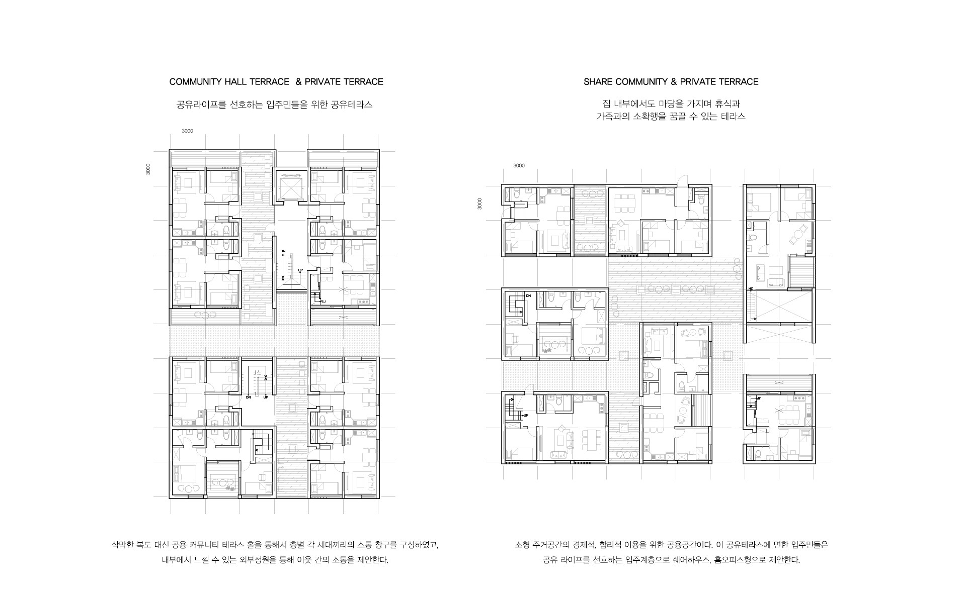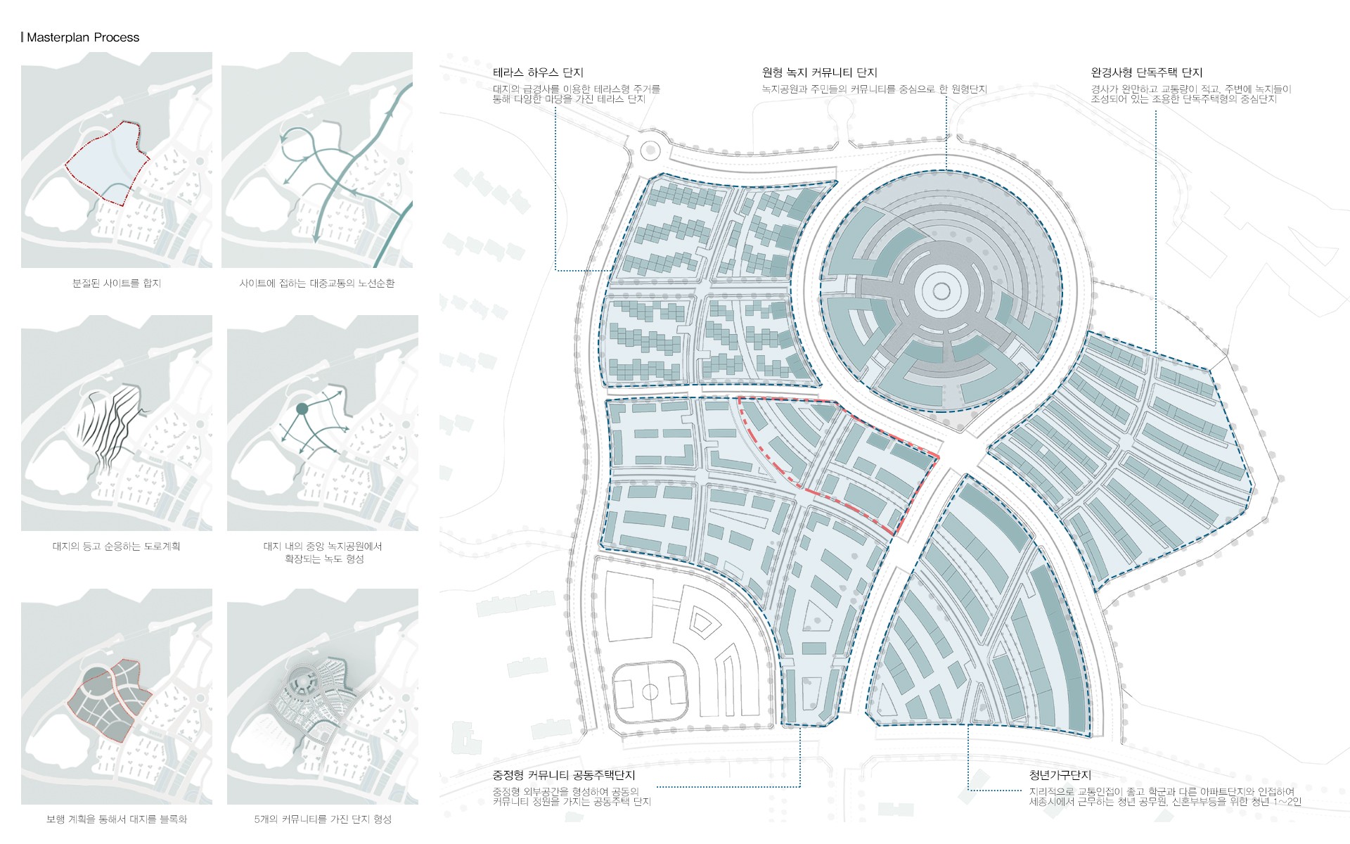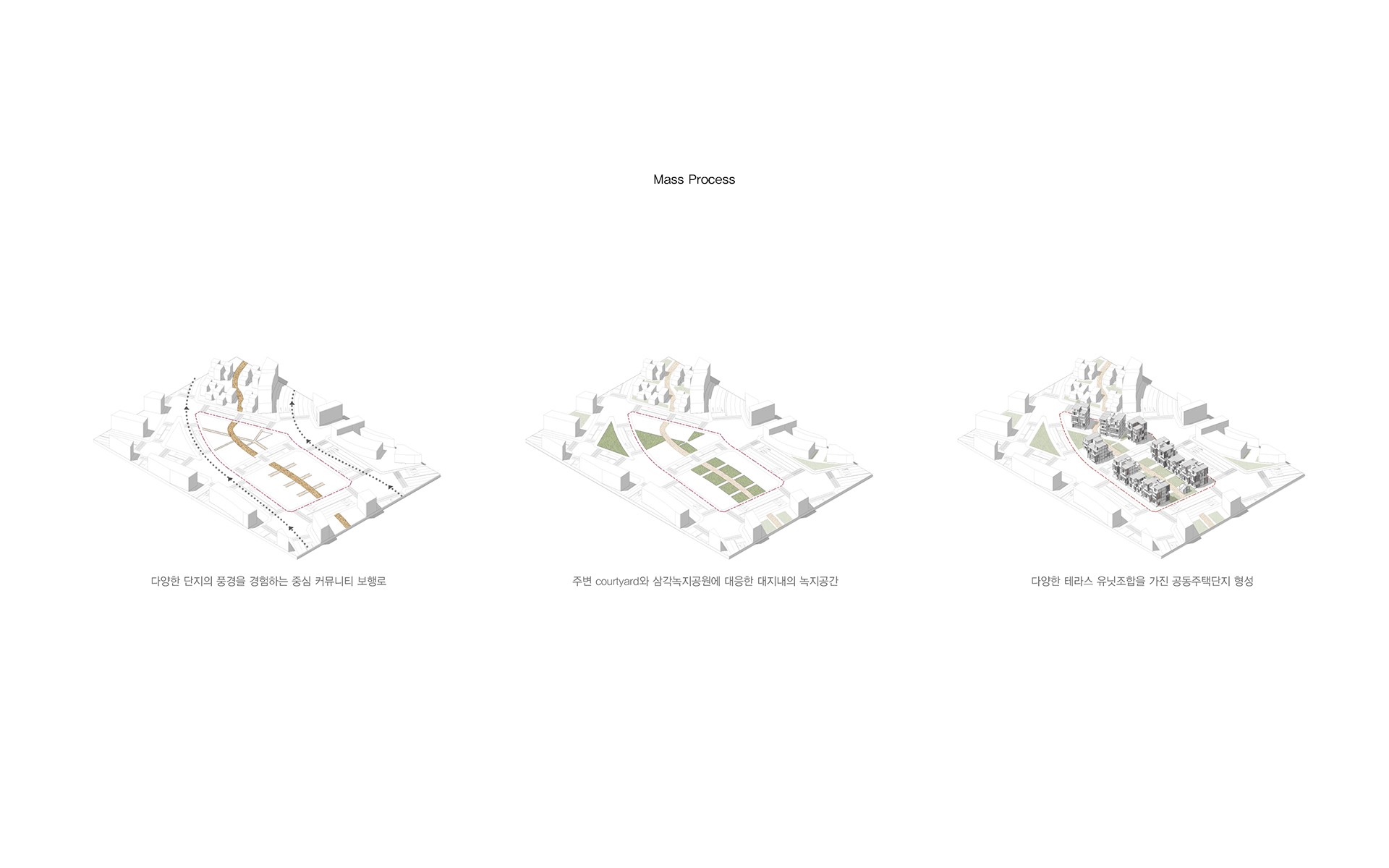 따라서, 세종시에는 다른 신도시와는 달리 지역적, 환경적 특색을 갖추고, 다시 주거 내부로 다양한 형태의 마당을 삽입되어 코로나 시대 이후에도 변화하는 주거유형과 이웃주민들과의 다양한 커뮤니티를 위한 공동주거를 제안한다.