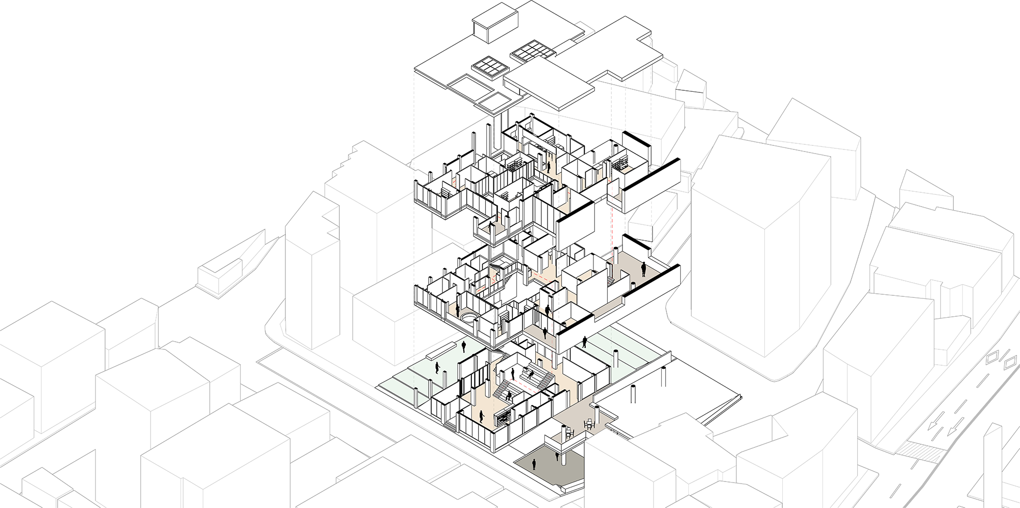 따라서 학생 및 지역주민을 위한 공간이 활성화 될 필요성이 있고, 이들을 위한 새로운 형태의 커뮤니티 공간을 제공한다.