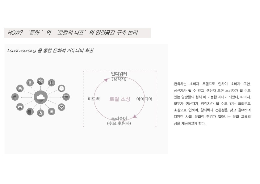 공유 관계를 형성 할 문화 공간을 제공한다. 과거의 창작자이자 생산자는 제한된 범위 내 창작 및 일방향적 형식을 지녔지만,