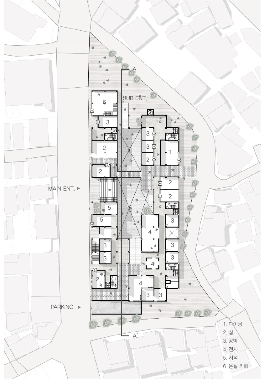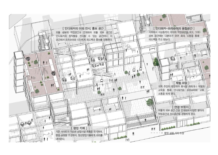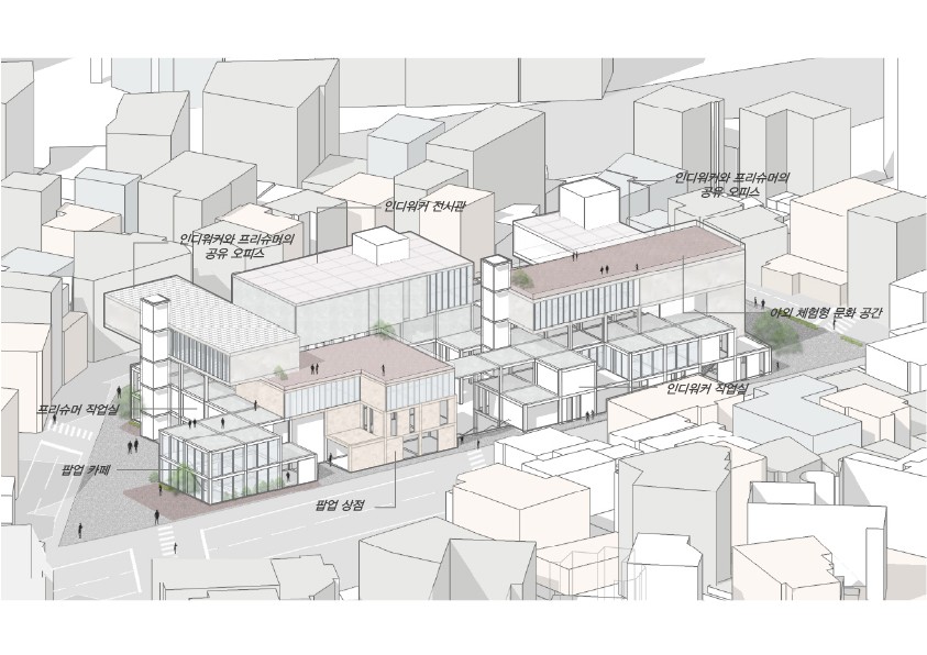 커뮤니티 공간이 필요한 상황이었다. 이에 따라 기존 도시의 흐름을 유지한 채 예술인과 지역 주민 간의