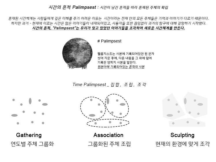역사가 이야기하는 시간의 흔적 “Palimpsest” 팰름지스트를 통한대지의 시간,공간적 정립이 필요하다.