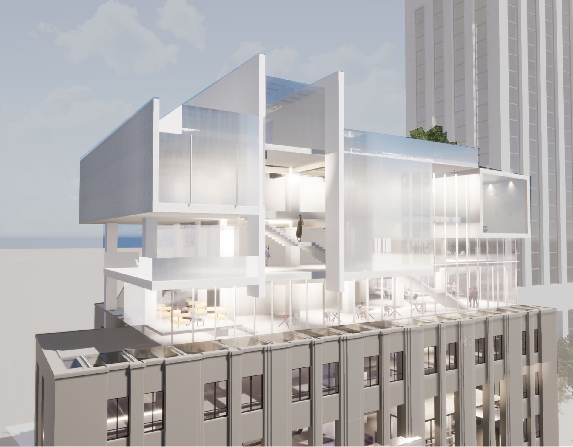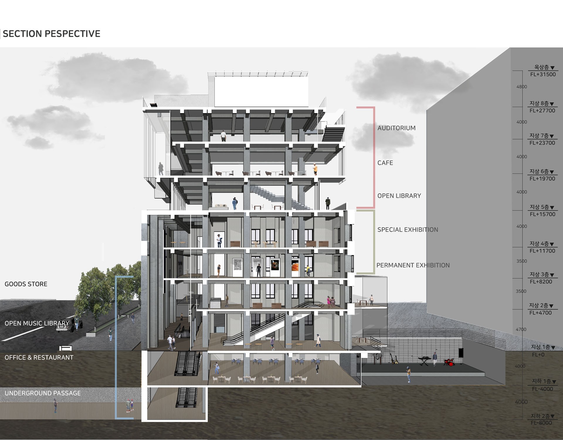양방향적 소통이라는 특징을 건물에 담아 사람들이 양방향적인 소통을 하는 다양한 움직임들을 통해 또 하나의