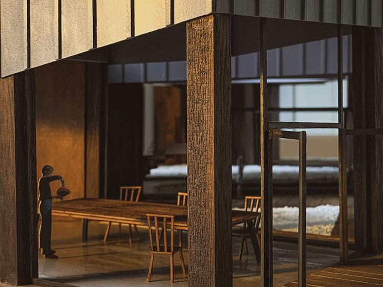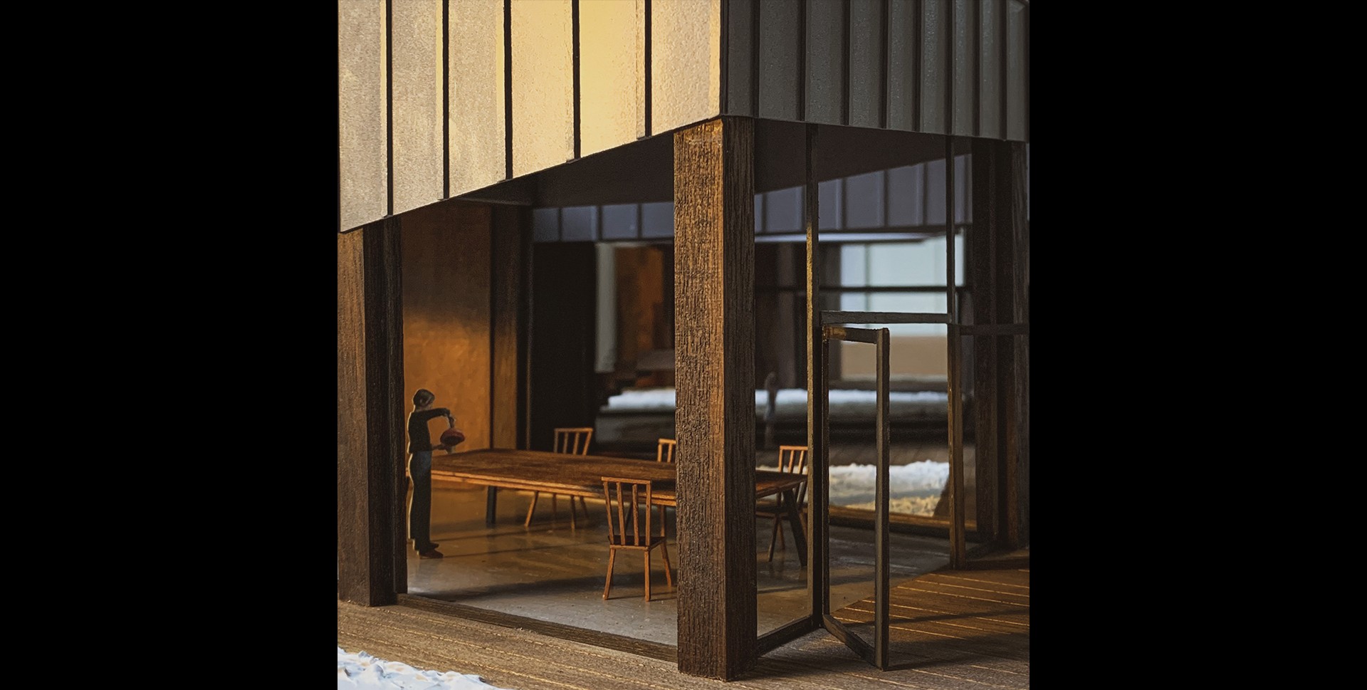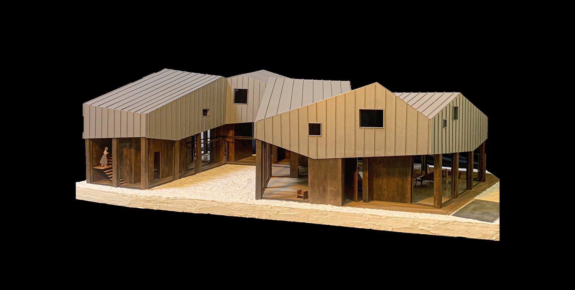 뒷산의 원경을 가로막지 않고 등고선을 이어가며 집 내부에는 둘러싸인 분위기를 주고 싶었다. 지붕매스는 산과 동화되기도 하고, 멀리 있는 봉우리를 받쳐주기도 한다.