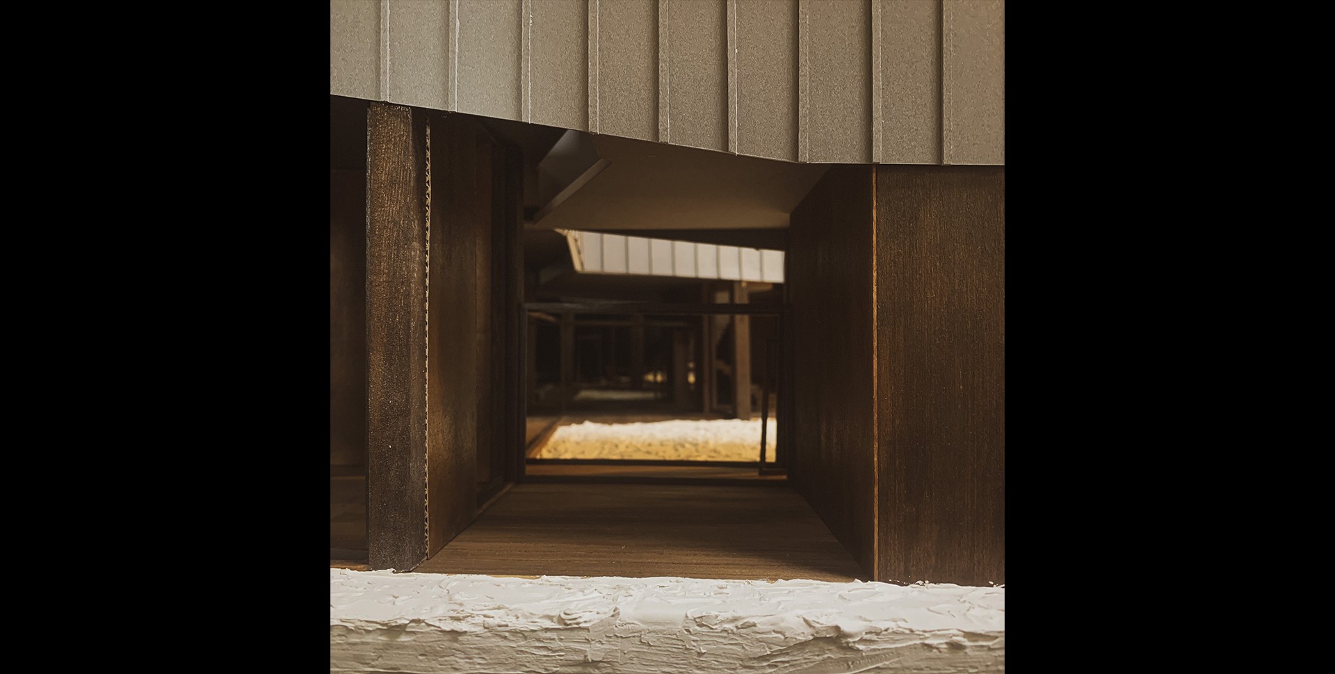 1층의 기둥 구조와 달리 주변 랜드스케이프를 따라 만들어진 두꺼운 지붕은 벽구조로서 하나의 매스 역할을 한다.