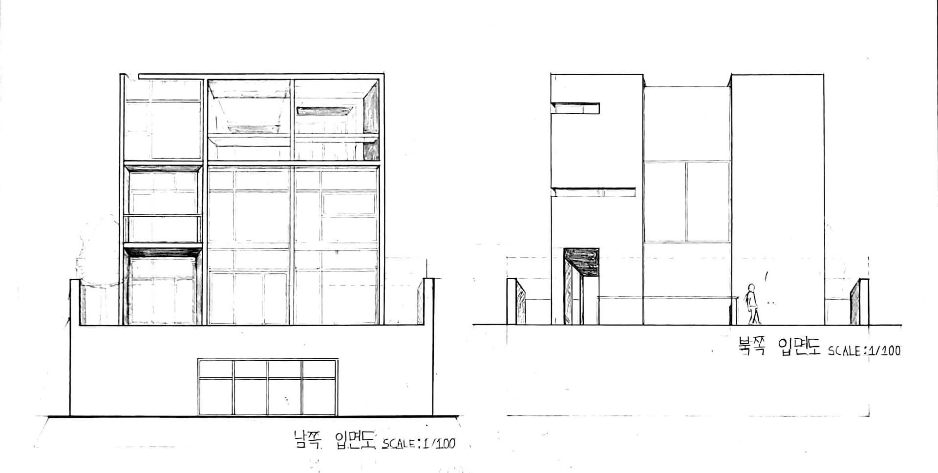 대지의 강점인 강한 조망감을 위하여 한쪽 면을 큰 규모의 창문들로 구성하였으며