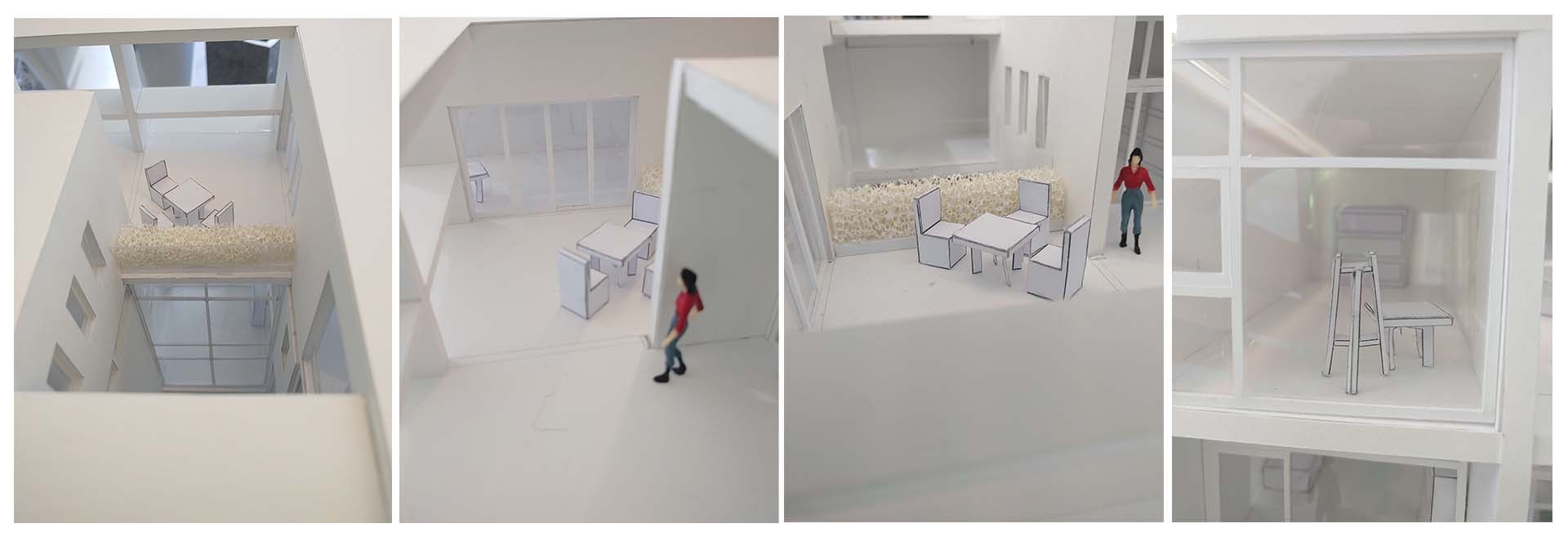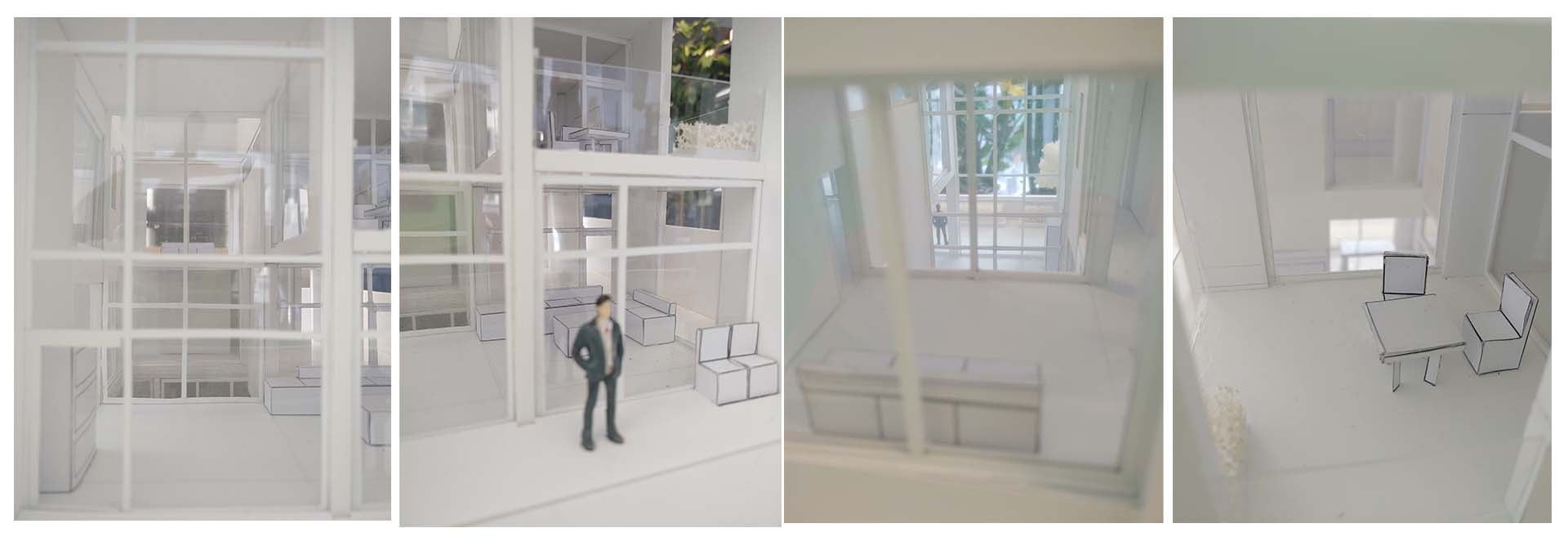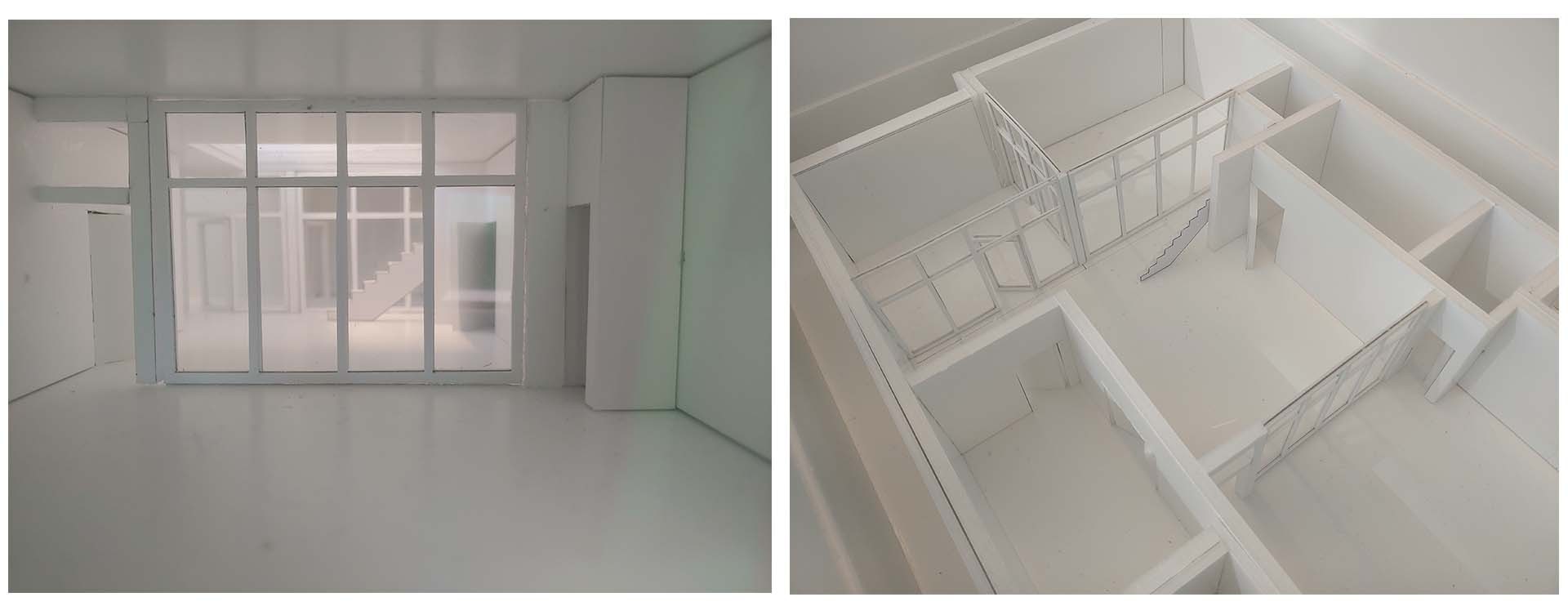 내부공간은 외부로 부터 시선을 막기 위해 폐쇄적인 외부공간과 다르게 자유로운 동선과 개방적인 공간을 가지도록 설계하였다.