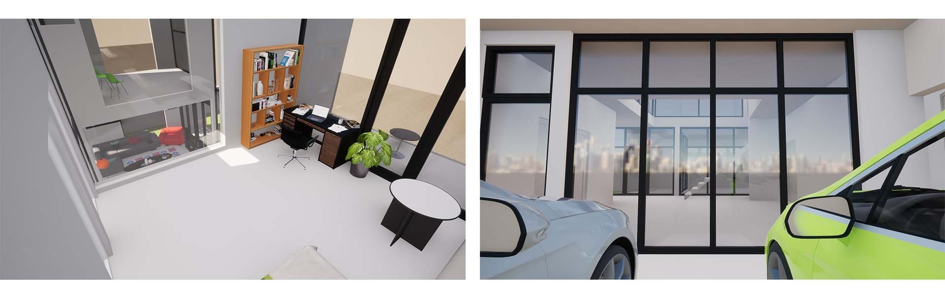 주택의 지하까지 이어지는 중정을 통해 외부의 빛을 내부로 들이고자 하였다.