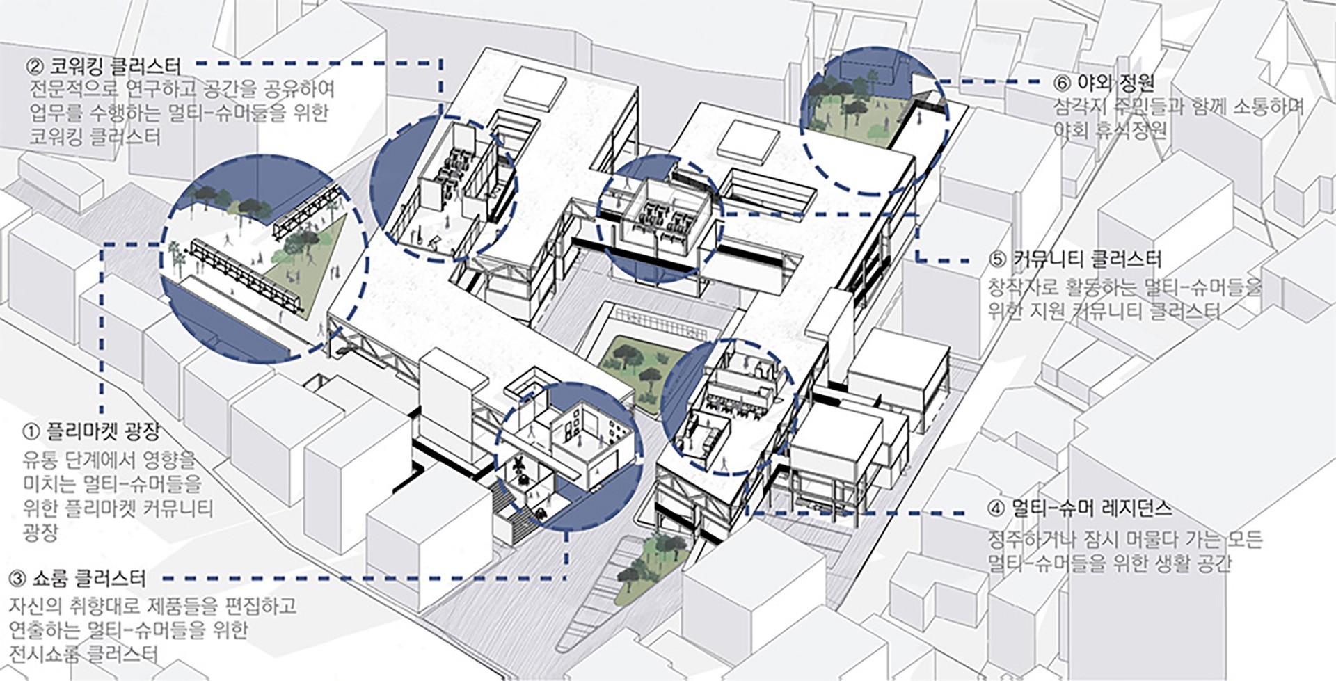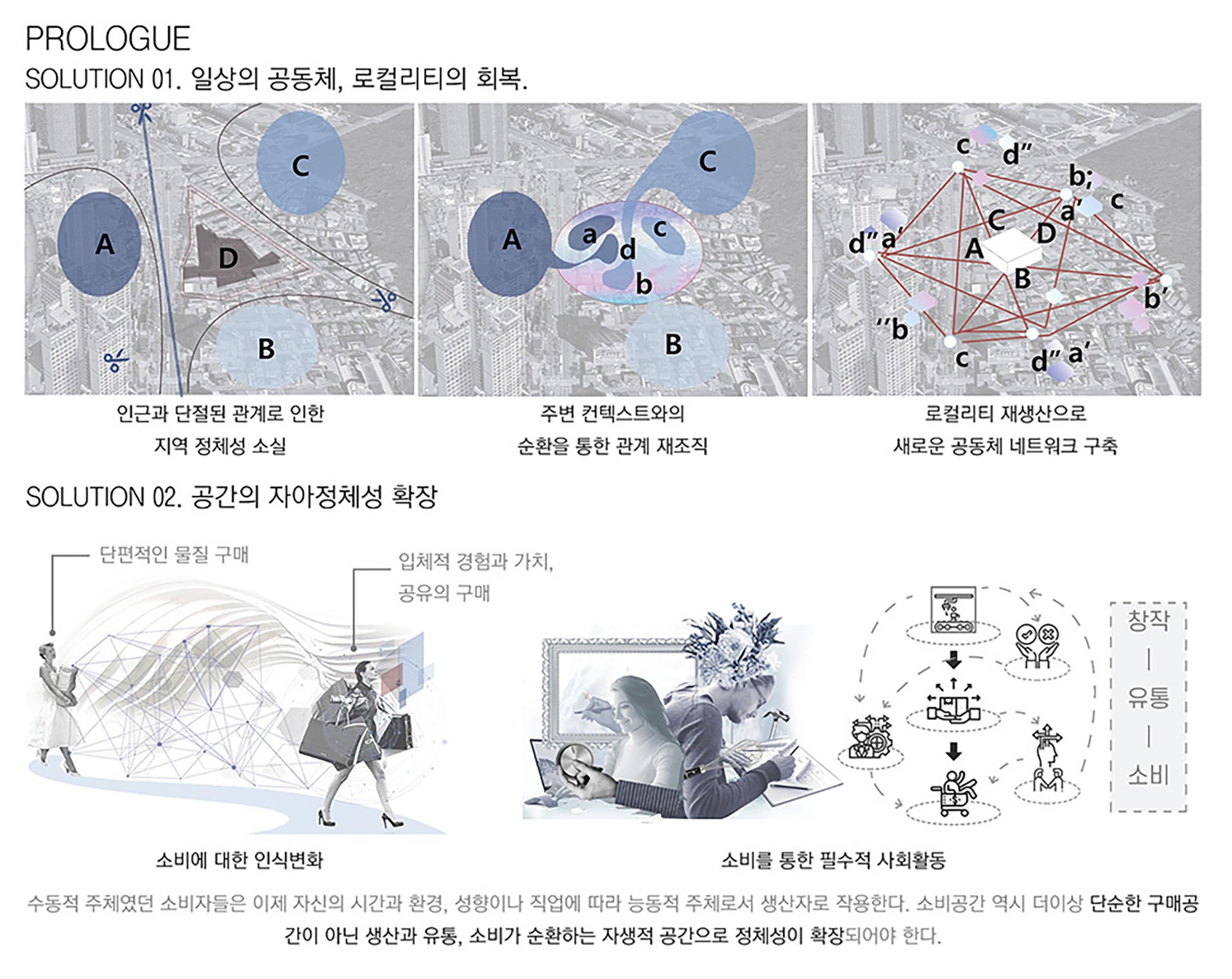 따라서 소비 공간 역시 단순한 구매 공간이 아닌 소비, 생산과 유통, 그리고 주거공간으로까지 모두 순환하여 멀티슈머 공동체 네트워크를 이루는 자생적 소비 생태계로서의 역할을 할 수 있어야 한다. 이러한 순환 시스템 속에서 공간은 문화 커뮤니티로서의 기능뿐만 아니라 지속 가능한 생태계 허브로서 작용할 수 있을 것이다.