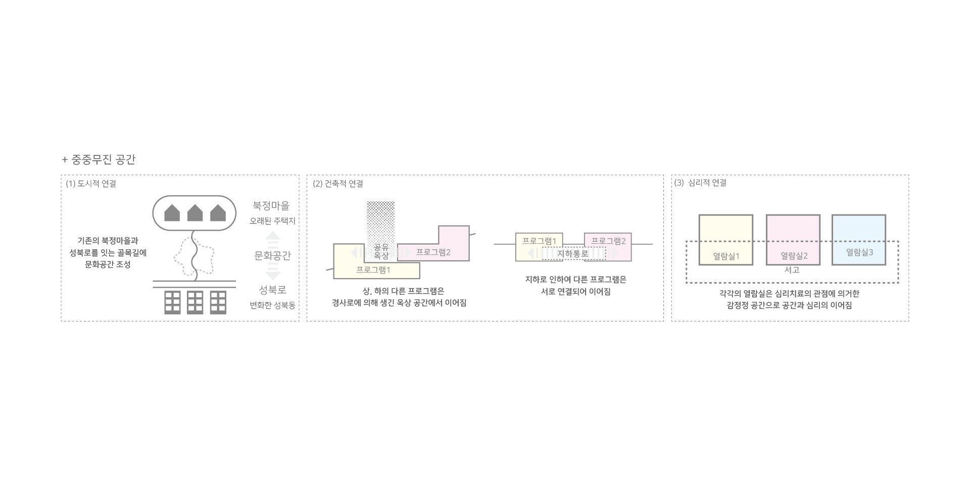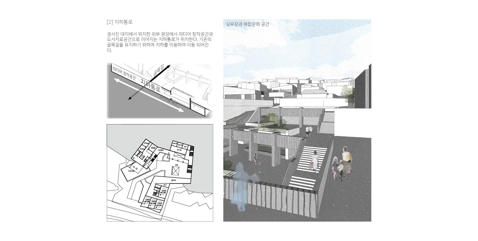 서로를 이해한다는 것은 공감이다. 이해하고 두려움이 해소된다면 혐오가 해소될 수 있다. 그러함으로 현대 시대에는 혐오를 해결하기 위한 공감의 공간이 필요하다. 서울은 주거, 문화 ,상업이 밀집한 도시로 사람과의 거리가 매우 좁다 매일 부닥치게 되는 주변 사람들을 혐오하게 된다면 도시는 분열하게 될 것이다. 주변의 다른 사람들과 만나 알아가고 서로를 이해할 수 있는 공간은 공감의 공간으로 현대 사회의 혐오를 해소하는 공간으로 작동 할 것이다. 만남이 있는 공간으로 다양한 주변 사람들이 모일 수 있는 복합 문화시설을 공감의 공간으로 작동해야 한다.