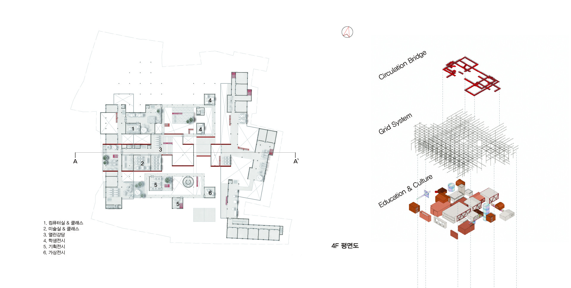 위해 문화시설을 융합한다. 교육과 혼합된 문화는 한 공간에 상생하며 다양한 활동을 발생시킨다.