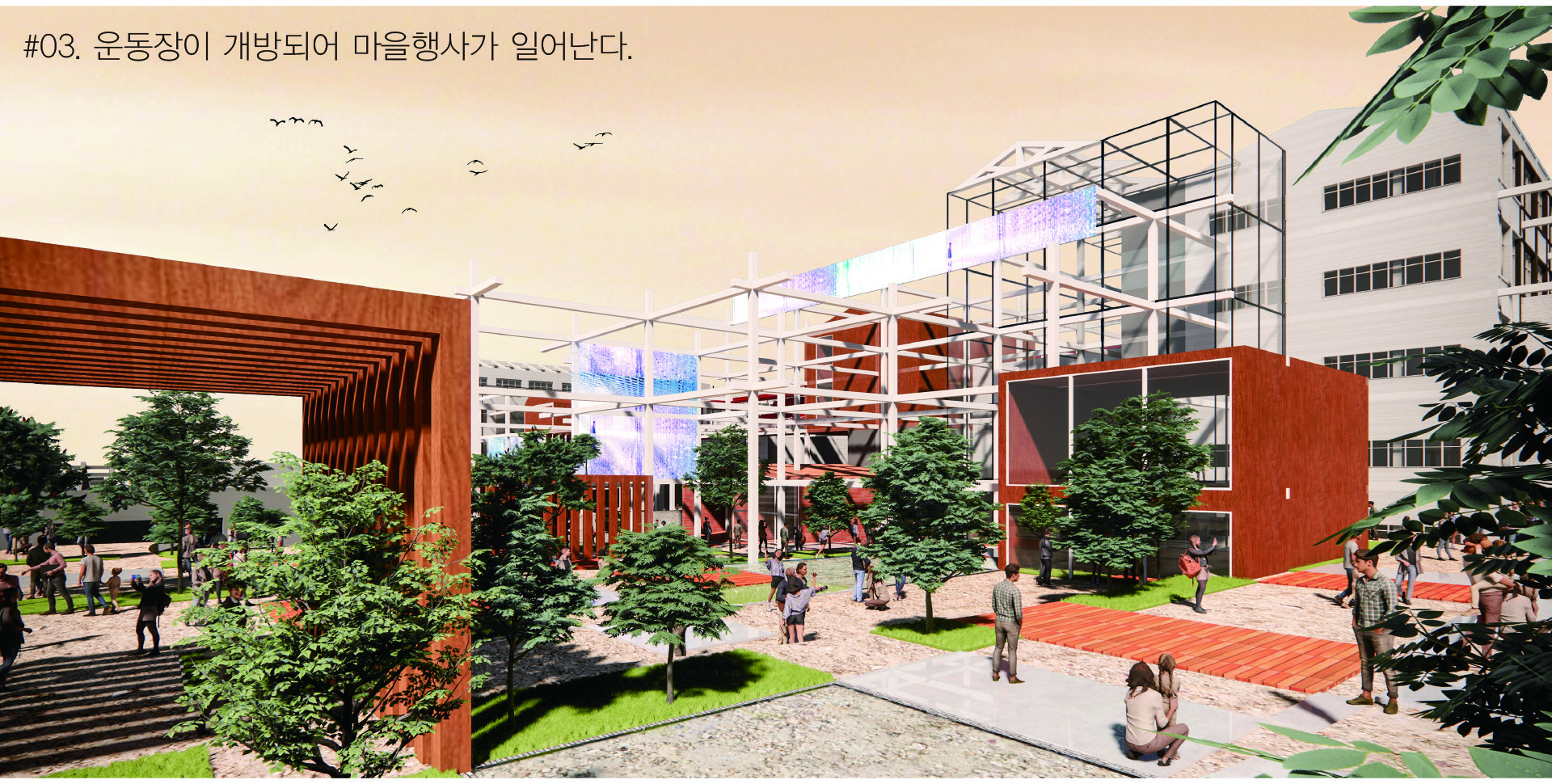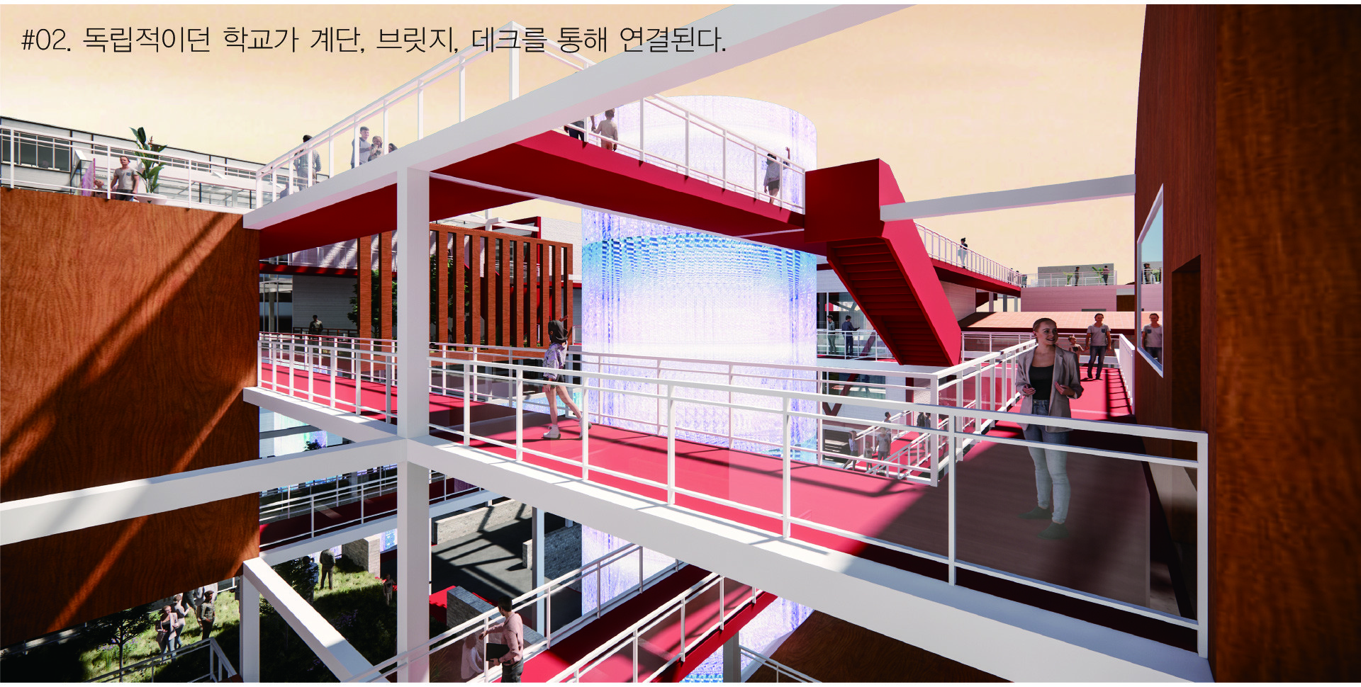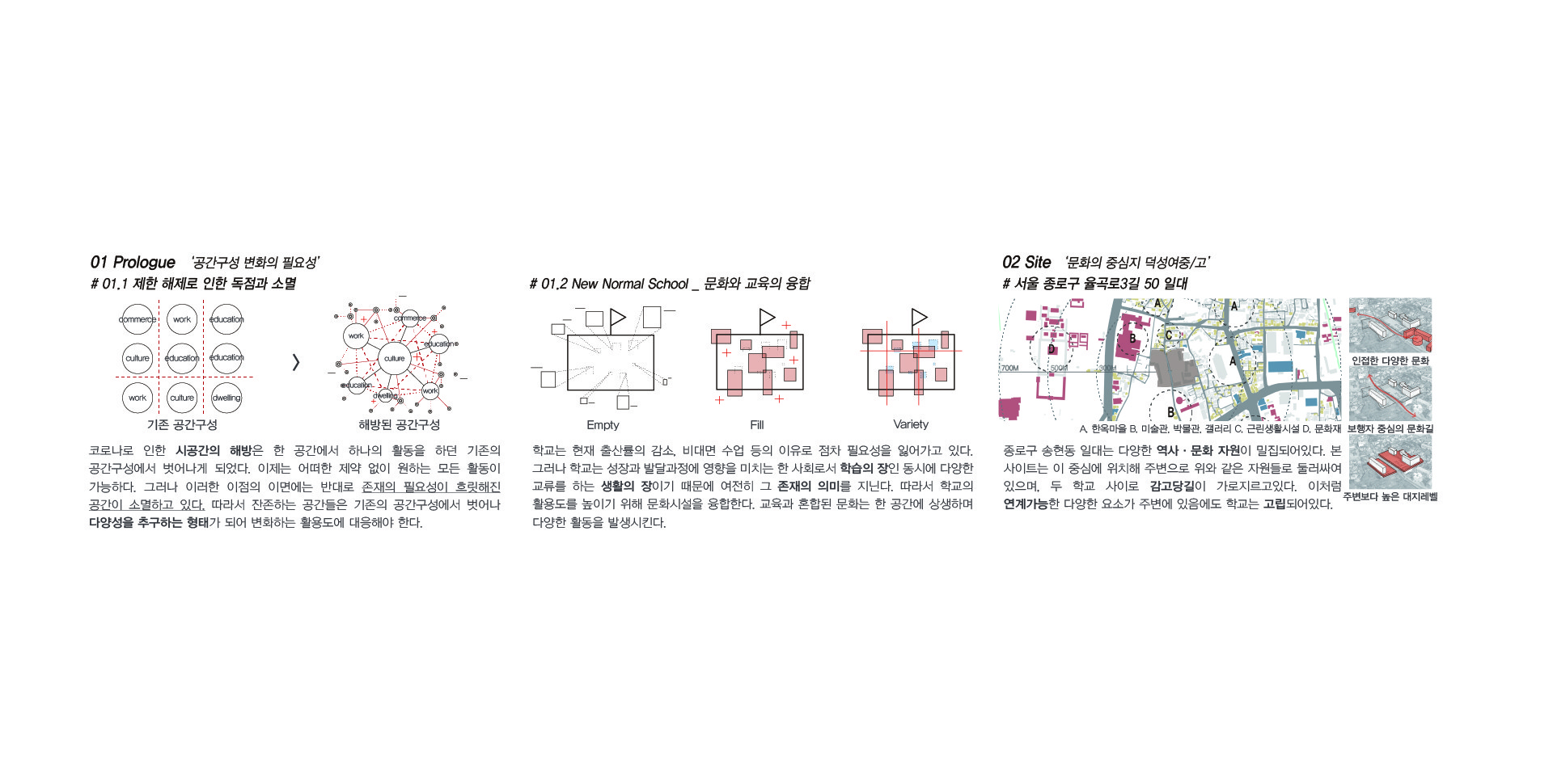 공공의 성격을 부여하고자 한다. 내어짐으로 인해 학교는 주변과 관계함으로서 새로운 교류의 가능성을 형성할 것이다. 또한 빠져나간