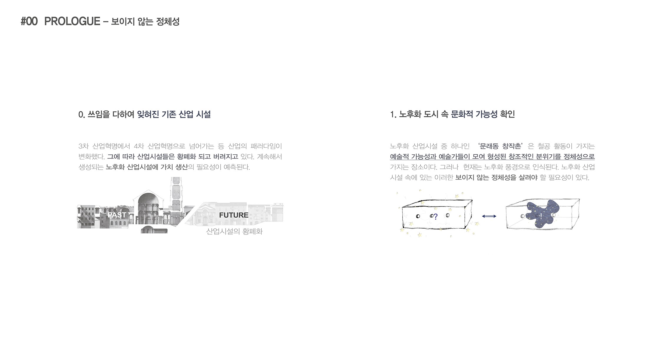 문래동의 과거를 기반으로 현재를 보여주고 미래 가치를 제시하는 향유 가능한 문화 체계를 제안한다.