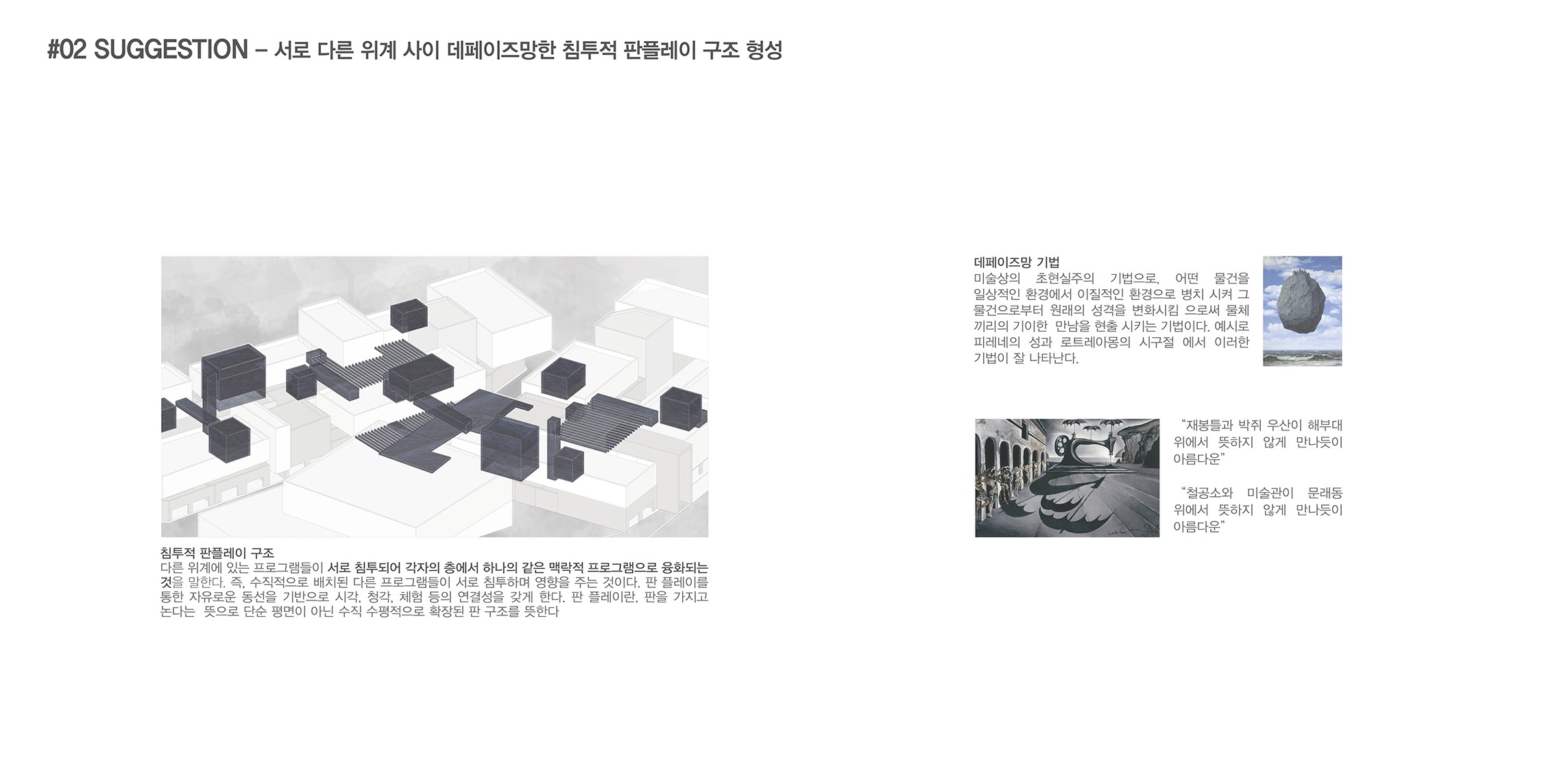 이렇게 병치된 레이어는 새로운 시스템을 구축하며, 하나의 문화로 향유할 수 있는 장소로 다시 찾을만한 곳이 될 것이다.