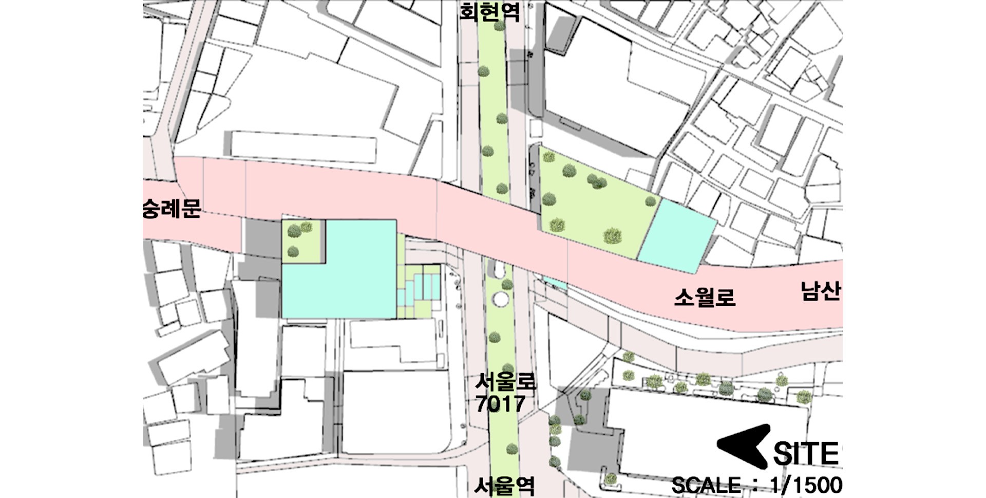 죽어가고 있는 사이트이다. 하지만 살리지 못한 특징들이 있다. 남산에서 숭례문으로 이어지는 성곽의 축선