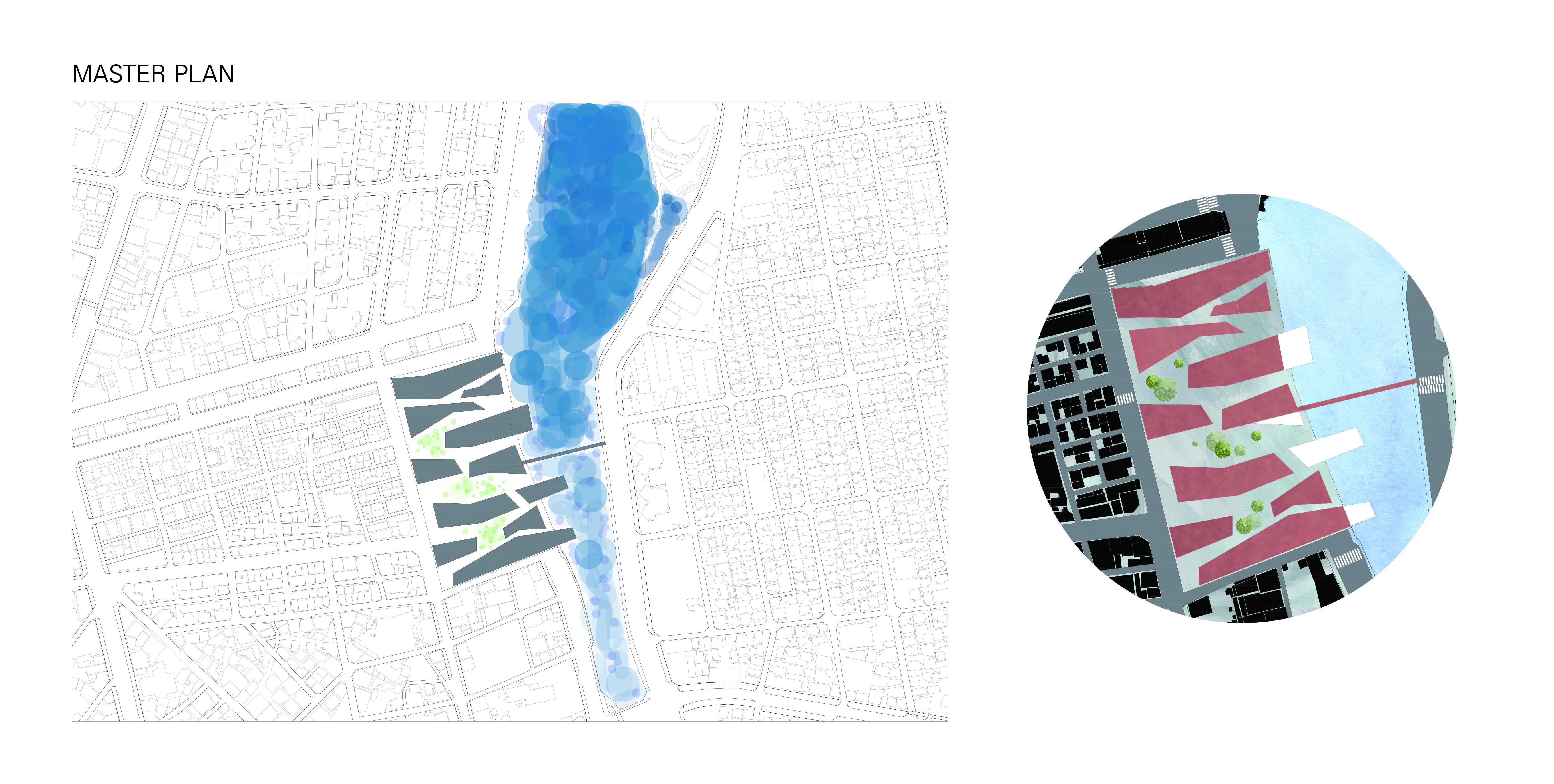 바다와 육지의 경계에 있는 시장은 그 자체로 하나의 접점이 된다. 접점의 공간이자 넓은 의미의 시장으로 나아가는 점진적인 형태로 순환한다. 보행교와
