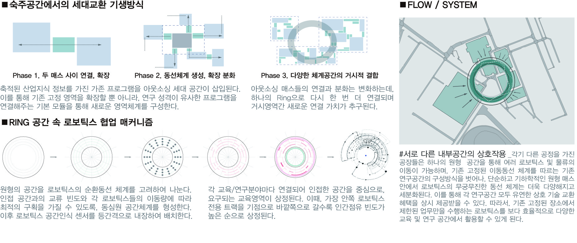 절대적으로 부족한 생산인구수를 보완하기 위해선 새롭게 개발되는 Ai자동화 시스템과 로보틱스 또한 적극적으로 동원해야 할 것이다. 두 바퀴 굴림체제에 익숙한 그들을 위해서는 새로운 체계의 수평적 공간 또한 반드시 고려해야 한다. 하지만 현재의 산업연구시설은 지극히 인간중심으로 일률화된 공간이 주를 이루고 있으며, 로보틱스를 그에 익숙하도록 개발하다보니 인간과 로보틱스의 매끄러운 상호작용이 불가능에 가까웠고, 이는 로보틱스 자체의 개발 정도마저 더디게 만드는 데 불과했다.