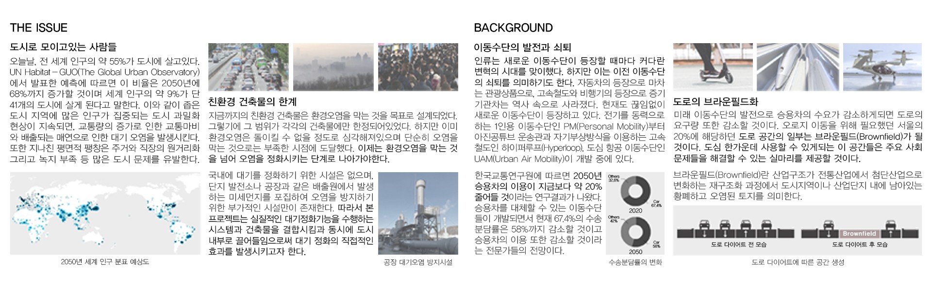 따라서 본 프로젝트는 실질적인 대기정화기능을 수행하는 시스템과 건축물을 결합시킴과 동시에 도시 내부로 끌어들임으로써 대기정화의 직접적인 효과를 발생시키고자 한다.
