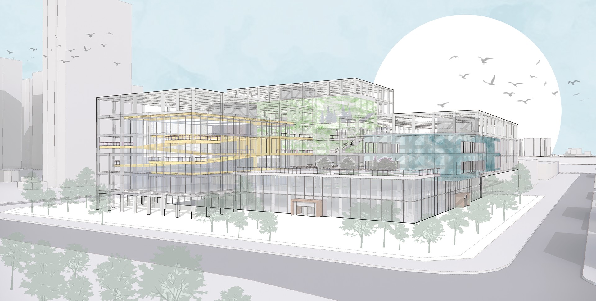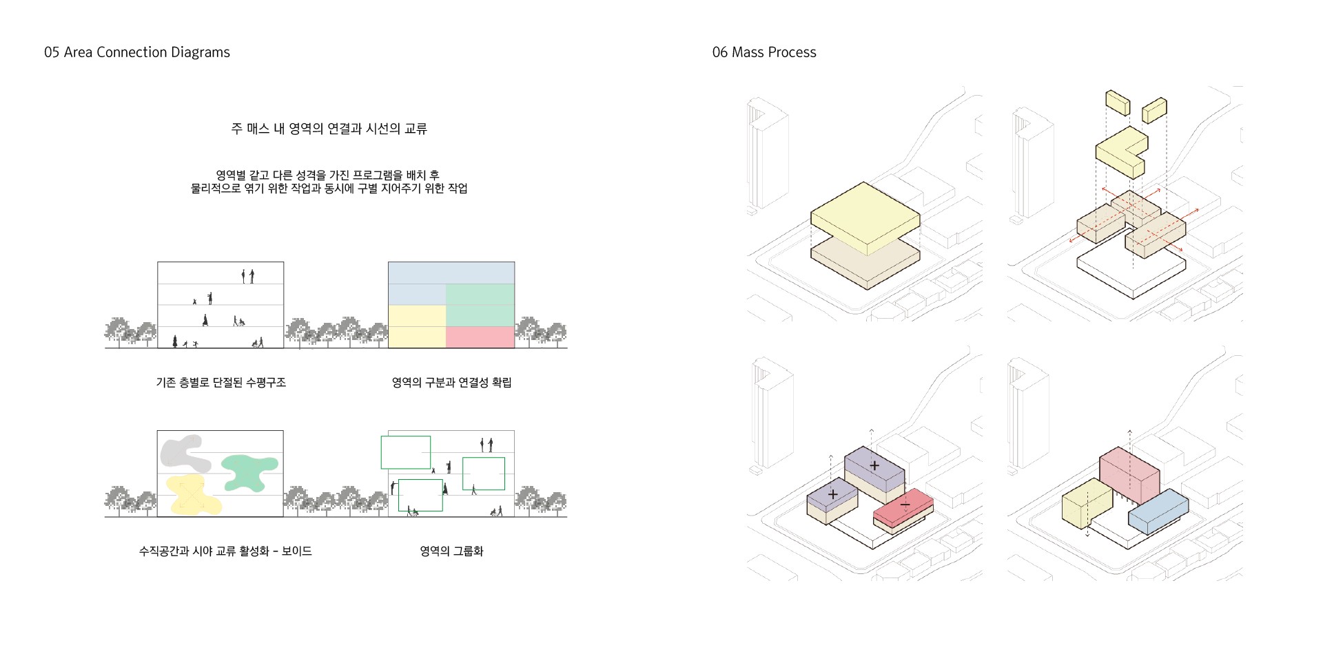 따라서, 매스상에서 두 개념을 구분지어 저층부와 고층부로 나누어 제공하고, 각각의 기능성을 더욱 부각시킬 수 있도록 하였다.