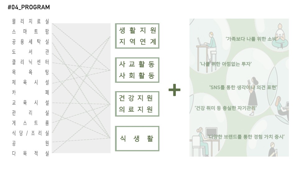 따라서 액티브 시니어들이 자립하여 제 2의 삶을 영위할 수 있는 주거 형태를 제안하고자 한다.