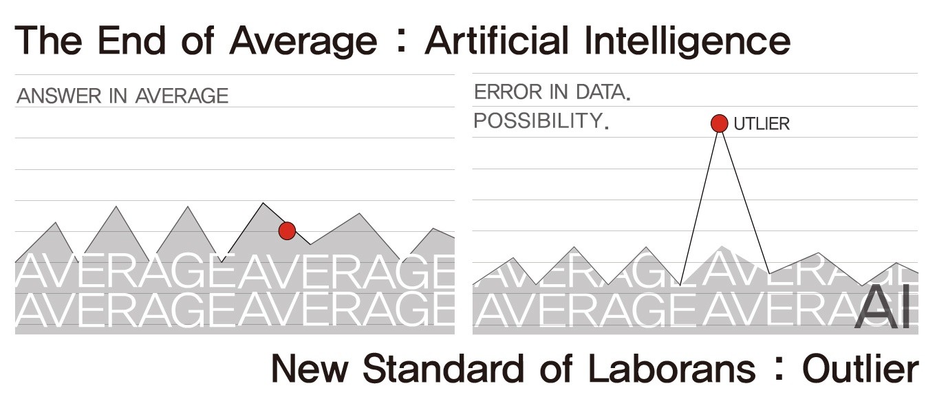 평균을 대체하는 ai의 등장으로 사람은 평균값이 아닌 Outlier를 생산해야한다.
