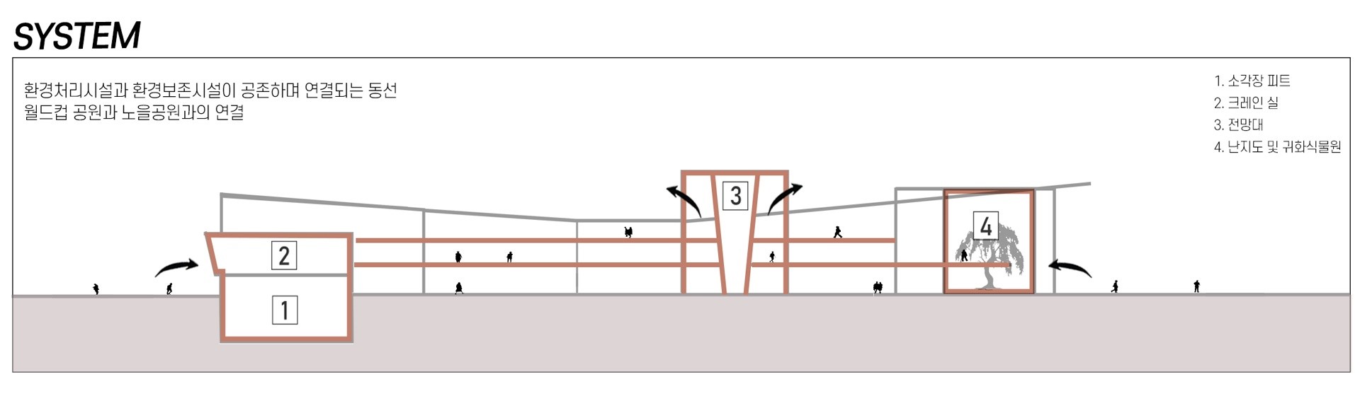 새로운 자원회수시설은 지하시설화를 통하여 본래의 기능은 수행하며 지상에 새로운 공간의 창출을 통해