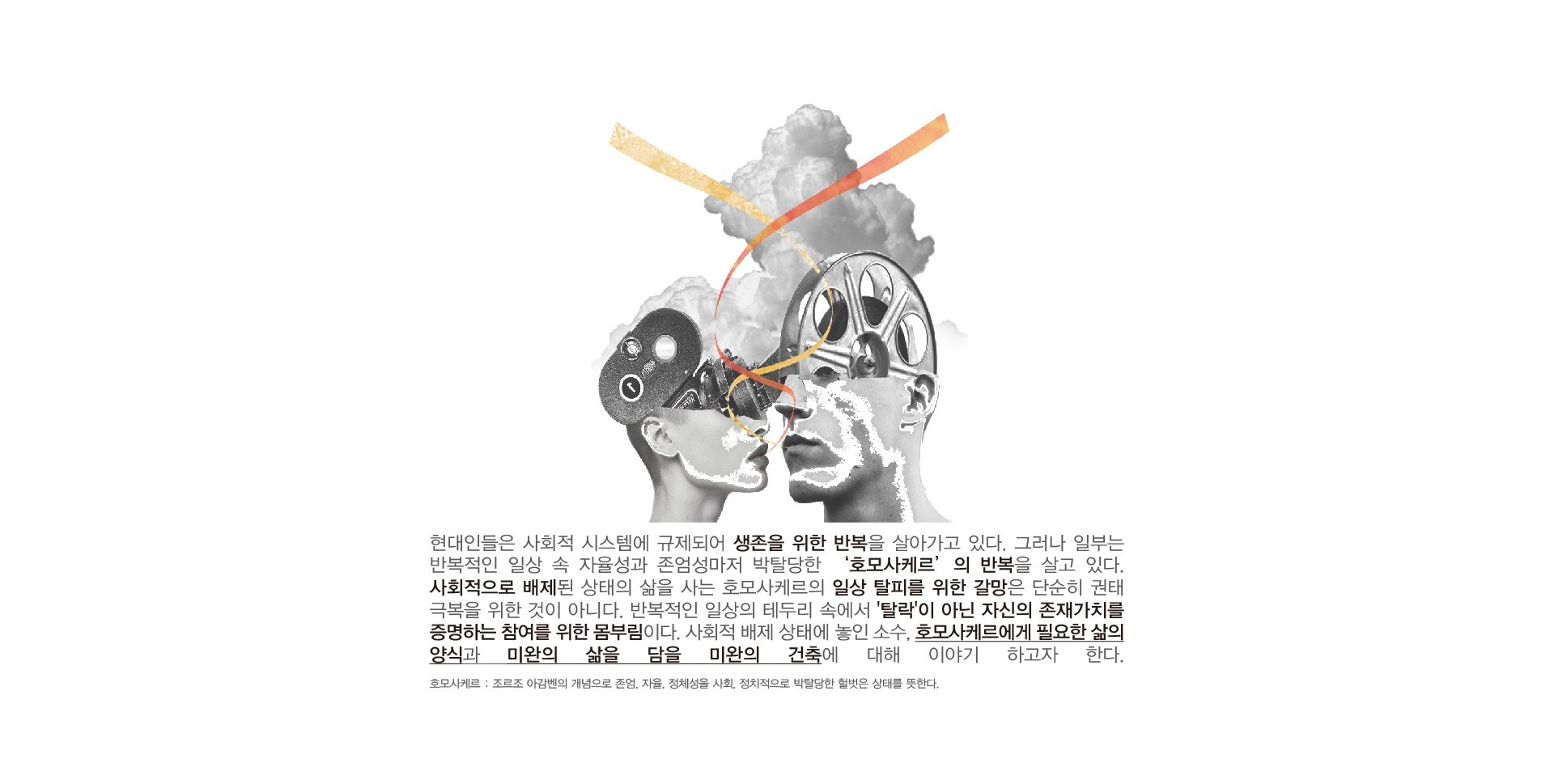 사회적으로 배제된 상태의 삶을 사는 호모사케르의 일상 탈피를 위한 갈망은 단순히 권태 극복을 위한 것이 아니다.