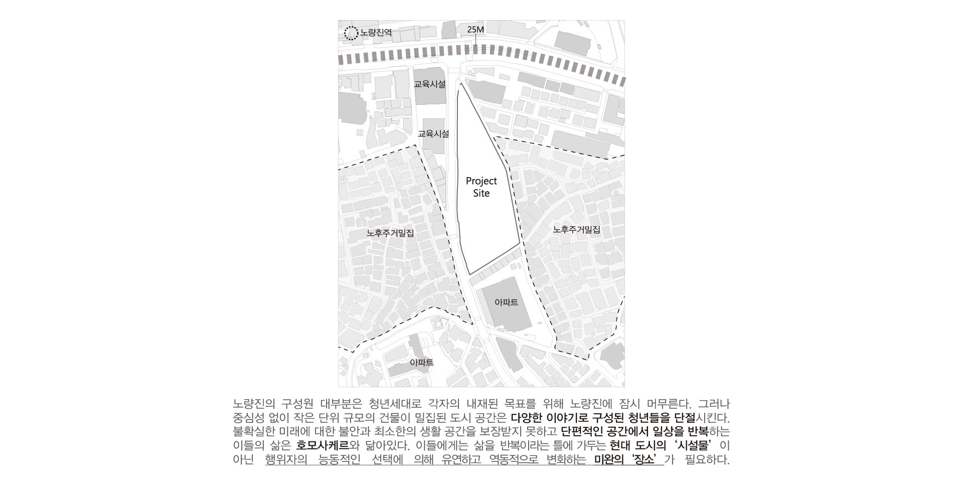 이들에게는 삶을 반복이라는 틀에 가두는 현대 도시의 ‘시설물’이 아닌 행위자의 능동적인 선택에 의해 유연하고 역동적으로 변화하는 미완의‘장소’가 필요하다.