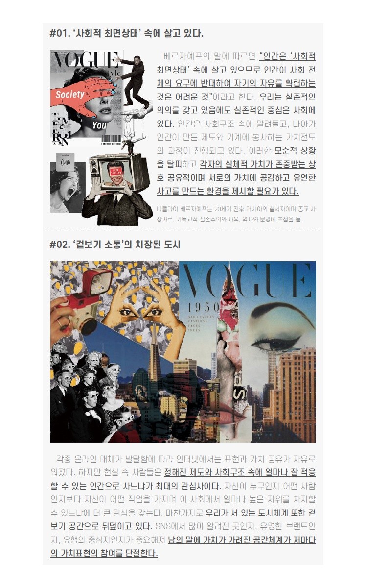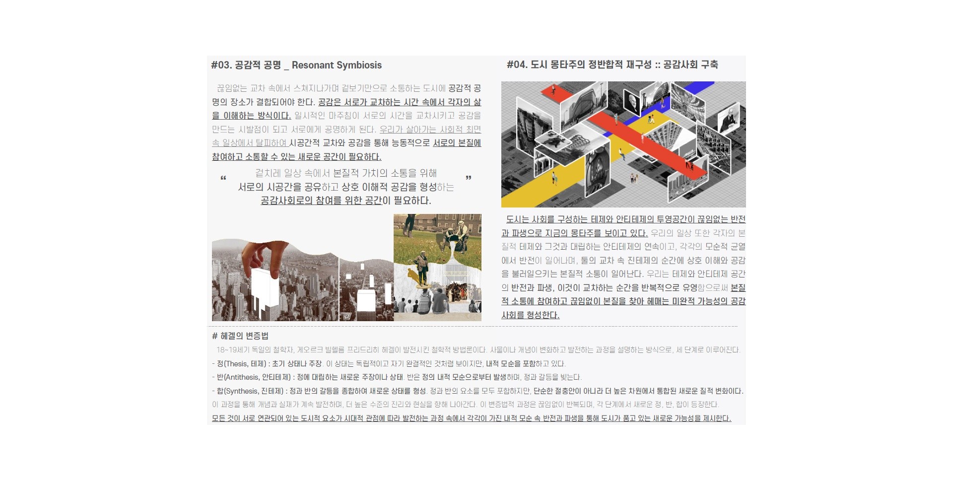 이것은 기존의 도시 모습에 안티테제로 작용하여 맞물리게 되며, 이 둘의 합일점에서 새로운 진테제적 관계성을 만들어낸다 .