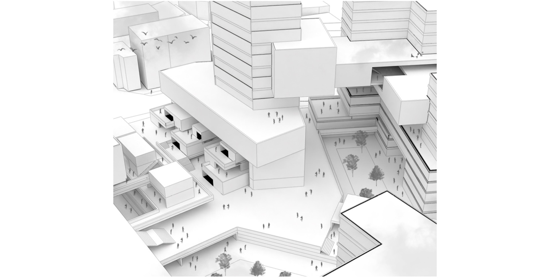 네트워크를 따라 문화시설, 상업시설, 편의시설과 같은 다양한 도시적 기능이 연결된 고밀도화 커뮤니티를 형성한다.