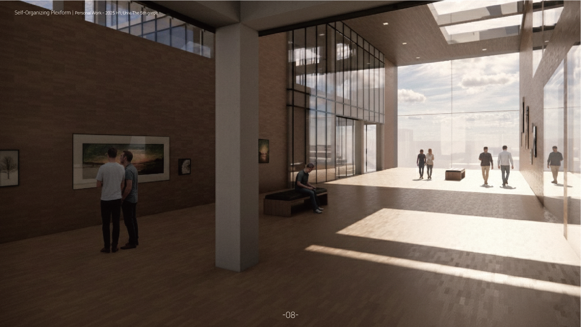 코로나 이후 온라인 쇼핑, 배달, OTT와 같은 온라인 문화생활 등의 비대면 환경의 확산은 홈플러스나 이마트와 같은 오프라인 쇼핑몰, 영화관 등의 대면 환경을 크게 위축시키는 결과를 불러왔다. 비대면 환경의 확산 자체는 단순하고 필연적인 사회적 환경의 변화로 문제가 되지 않으나, 이 과정에서 대면 활동이 이루어지는 여러 공간들이 급격하게 쇠퇴하고 버려지게 되는 것은 단순 그 건물만이 아니라 나아가 도시 전체의 활기를 잃게 만드는 문제 요소가 된다. 이러한 변화는 한때 완전하고 완성되었던 건축물도 시대가 변화함에 따라서 위기를 맞이할 수 있다는 것에서 의미가 있다. 비대면, AI 등 다양한 시대 변화로 건축물은 준공 당시에 부여된 기능만으로는 ‘완성성’을 유지하지 못하고 위기를 맞이하였다. 이는 단순하고 변하지 않는 활동으로 의미가 고정된 ‘근대적 건축’은 앞으로의 시대에 맞지 않다고 말할 수 있다.