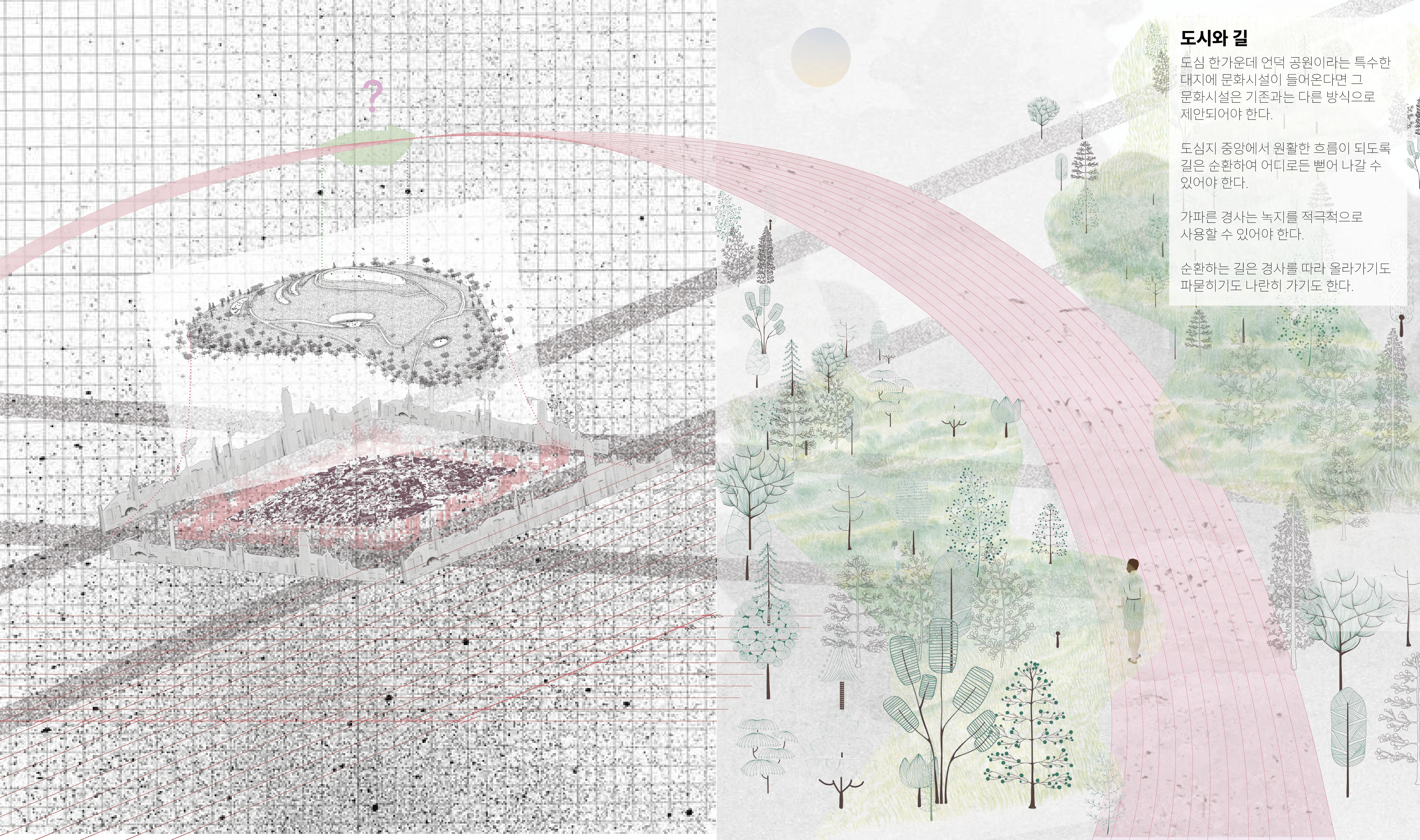 도심 한가운데 언덕 공원이라는 특수한 대지에 문화시설이 들어온다면 그 문화시설은 기존과는 다른 방식으로 제안되어야 한다.