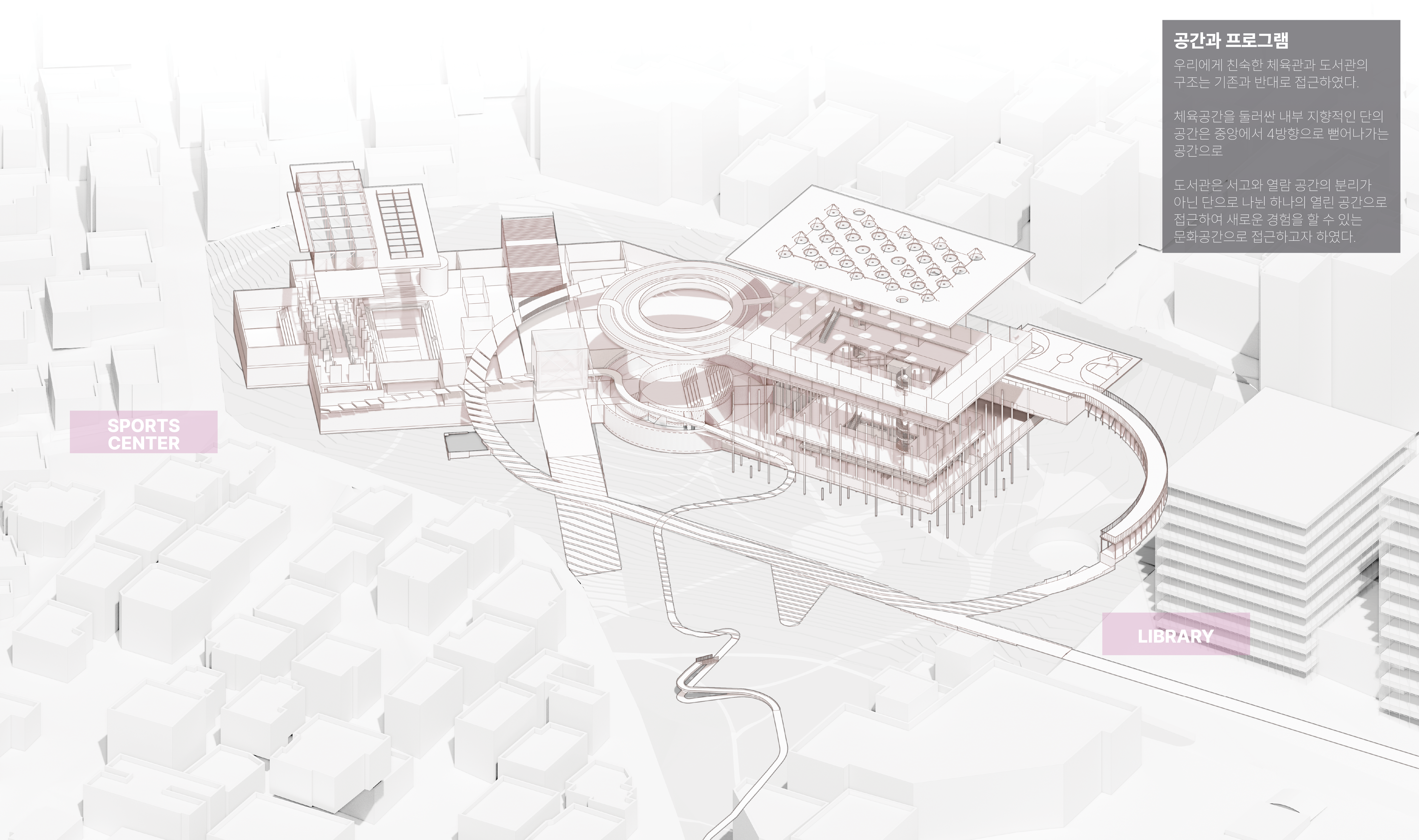 우리에게 친숙한 체육관과 도서관의 구조는 기존과 반대로 접근하였다.